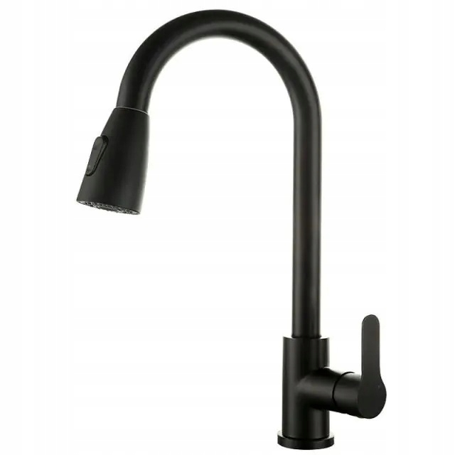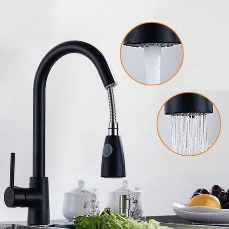 Смеситель для кухни черный с выдвижным изливом и краном