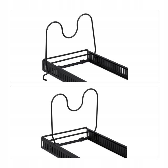 Эта подставка для кастрюль позволяет организовать кухонную утварь в шкафах и на столешницах. Черный органайзер для кухонной утвари с 6 регулируемыми отделениями предлагает достаточно места для хранения сковородок, кастрюль, крышек, досок и посуды. Выдвижную решетку для кастрюль можно отрегулировать в соответствии с размером ваших шкафов или кухонных шкафов или использовать в двух отдельных частях. Противоскользящие накладки обеспечивают надежный захват и предотвращают появление царапин на поверхности.