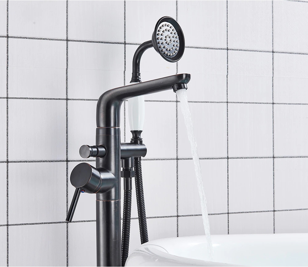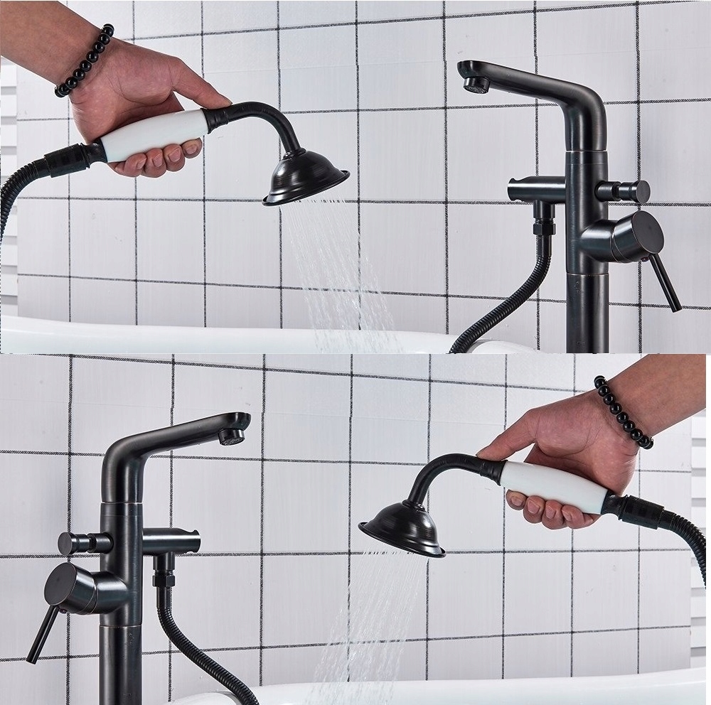 Чорний OLD Retro окремо стоячий змішувач для ванни
