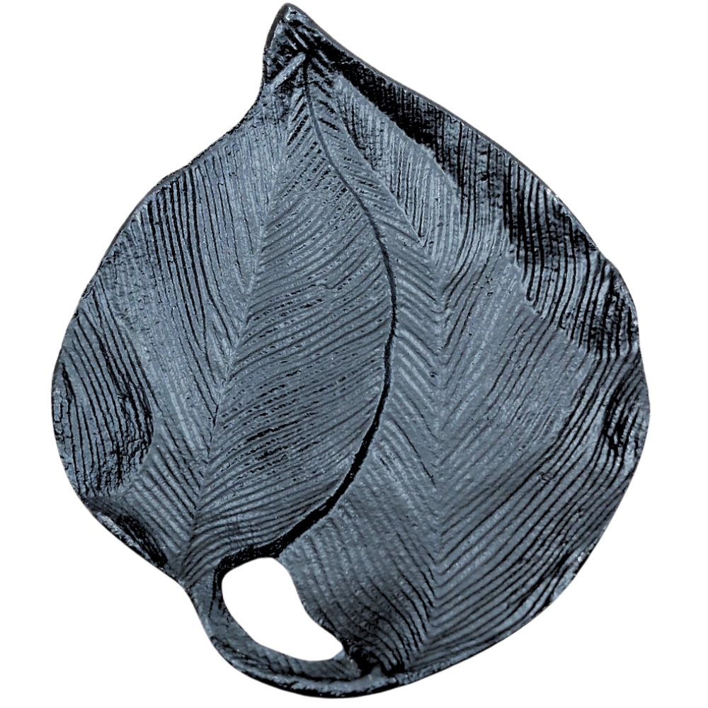 Декоративный поднос в форме листа, металлическое оформление, натуральный черный
