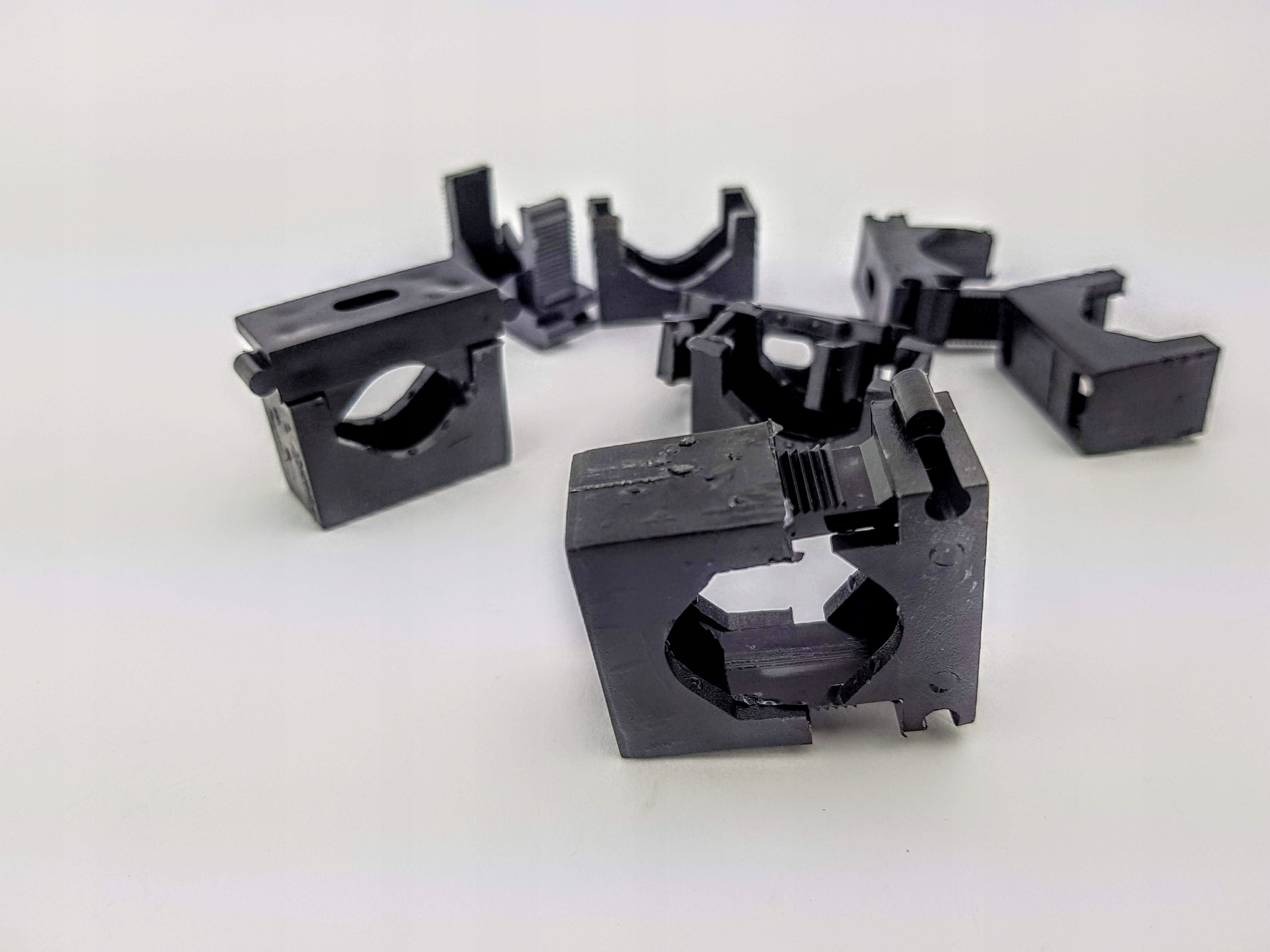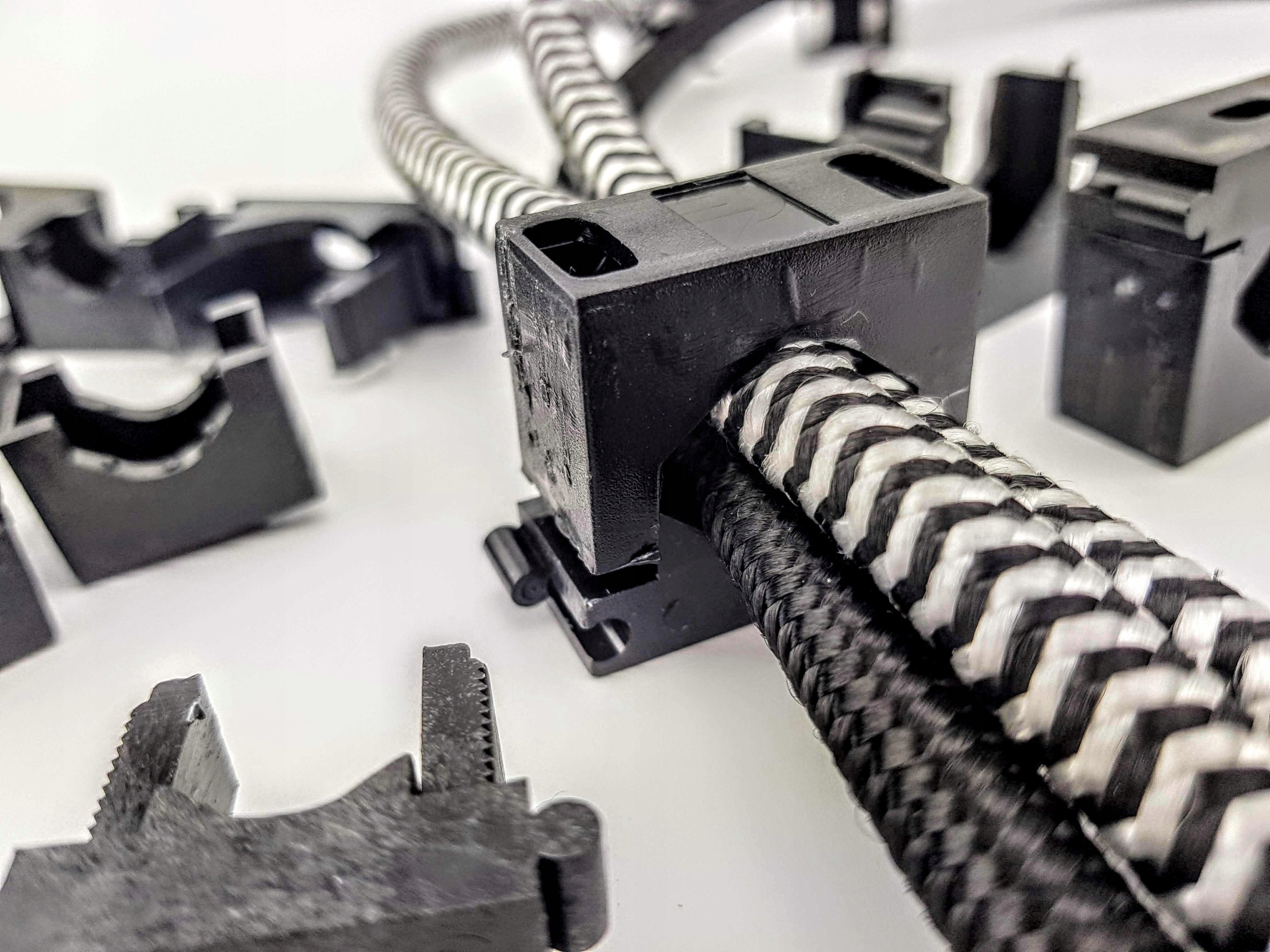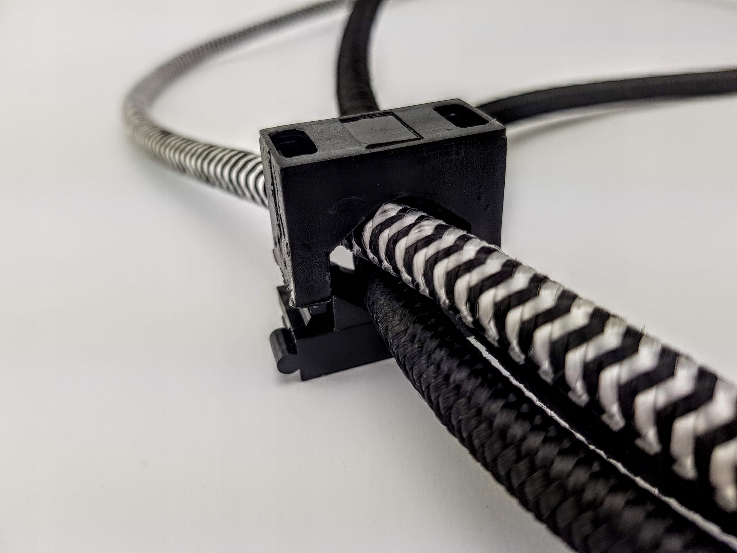 Держатели очень просты в сборке и состоят из двух элементов: корпуса, который прикручивается к стене, потолку или где угодно, и прессующий колпачок. Прикрутите корпус с помощью шпильки, входящей в комплект, уложите кабель и прижмите крышку.