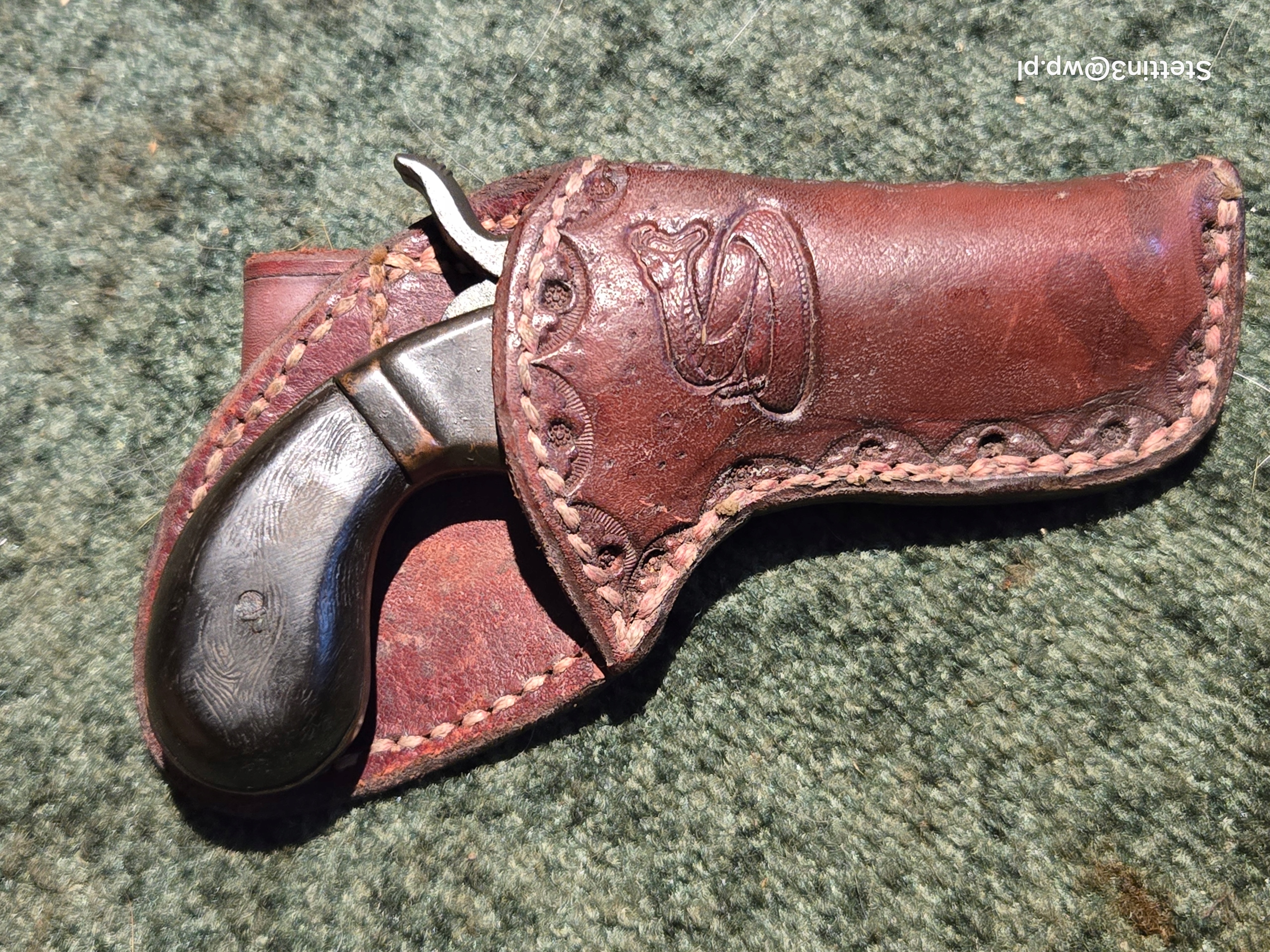 В хорошем состоянии, ударный дерринджер модели Манхэттен. 1868 г. Полностью боеспособен. Калибр 9 мм. Вероятно, подделка бельгийского периода (без маркировки). Стальной каркас с медным покрытием. Кобура в комплекте. Настоящее фото. РЕКОМЕНДУЮ.