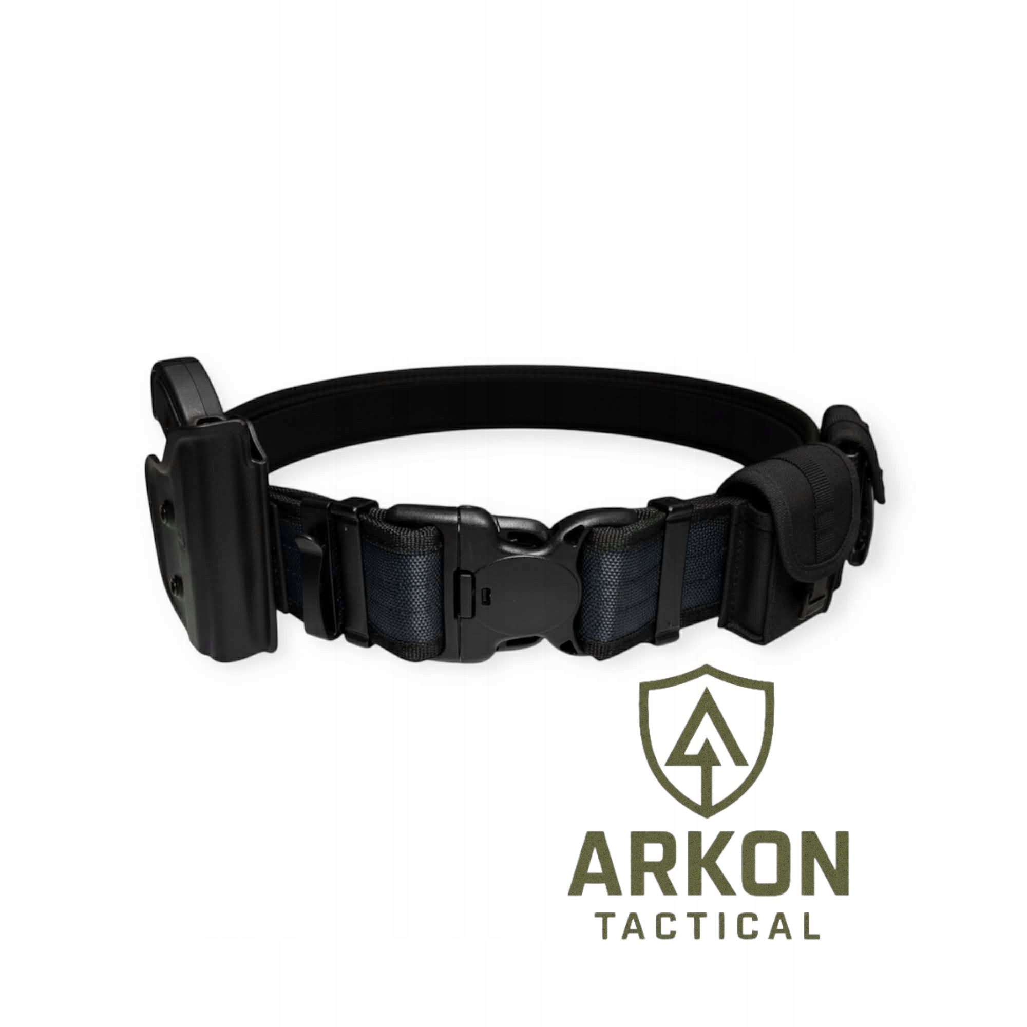Тактический пояс с подпоясом для ношения снаряжения, используемого полицией, муниципальной охраной, пограничной службой, службой безопасности и другими силовыми службами, черного цвета.