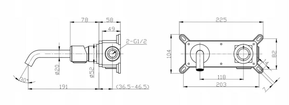 - Диапазон излива: 191 мм
