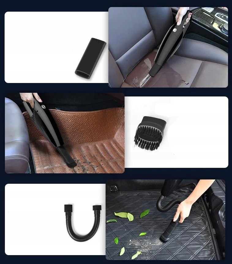 Сверхвысокая мощность всасывания 120 Вт , может впитывать монеты, клочки бумаги, воду, сажу и так далее. Пылесборник открывается кнопкой, и мусор можно легко выгрузить. Фильтр можно мыть. Оснащен шнуром питания длиной 5 м, а это значит, что вы сможете очистить любое место в автомобиле и багажнике, сэкономив время и силы.
