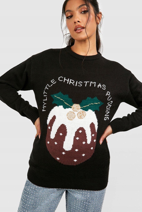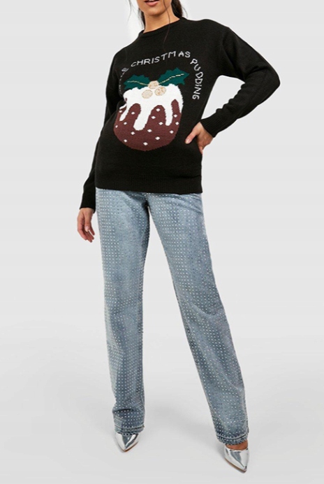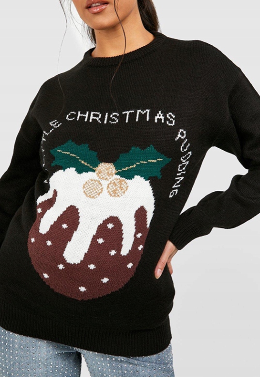 ЧЕРНЫЙ РОЖДЕСТВЕНСКИЙ ДЖЕМПЕР ДЛЯ МАТЕРИАЛОВ BOOHOO 38 FCA