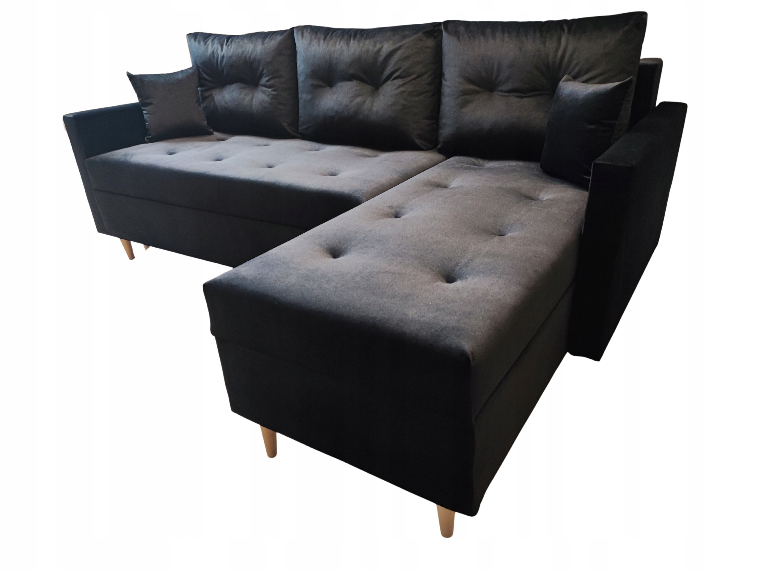 ЧЕРНЫЙ РАЗДВИЖНОЙ УГЛОВОЙ ДИВАН ДЛЯ ГОСТИНОЙ SCANDIK PIK BONELL 2x БАРХАТНЫЙ КОНТЕЙНЕР