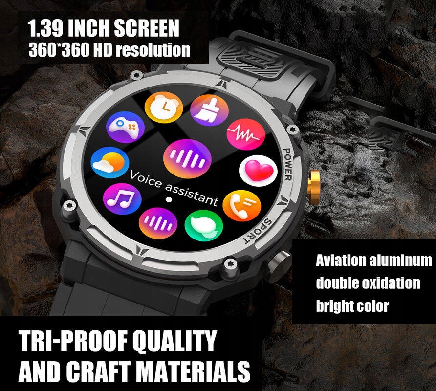 TFT HD 1,39', 360 x 360 px, с регулировкой яркости, красочный, сенсорный, персонализация - 7 циферблатов на выбор + дополнительные циферблаты доступны в приложении + свои циферблаты, поддержка анимированных циферблатов