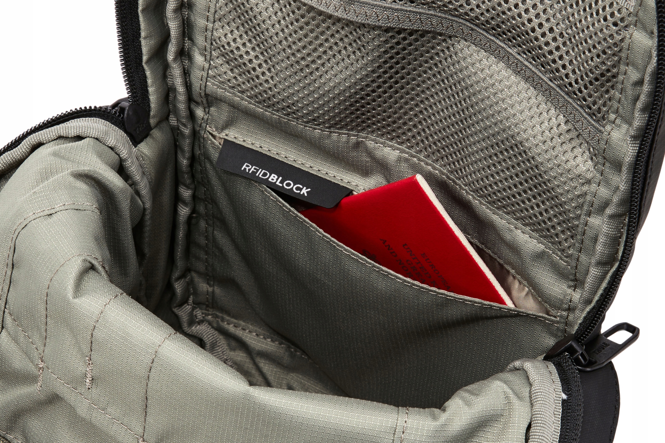 - Защитите свою личность и личные данные с помощью кармана, блокирующего радиочастотные волны.