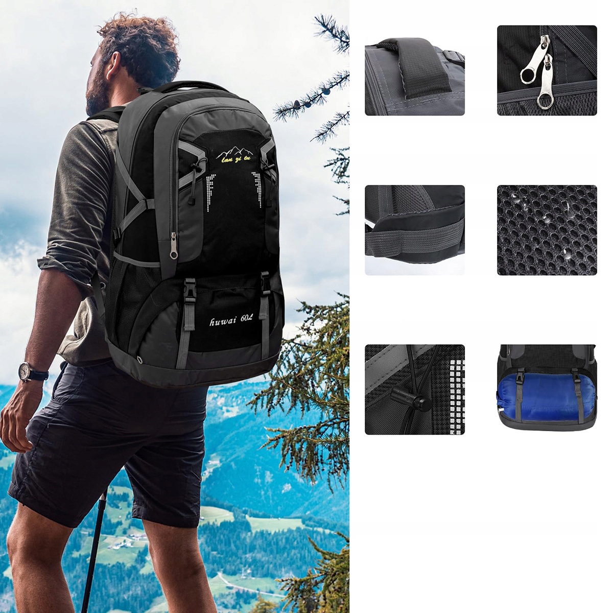ЧЕРНЫЙ ТУРИСТИЧЕСКИЙ РЮКЗАК ТРЕККИНГ В ГОРАХ 60 Л STRONG МУЖСКОЙ ЖЕНСКИЙ