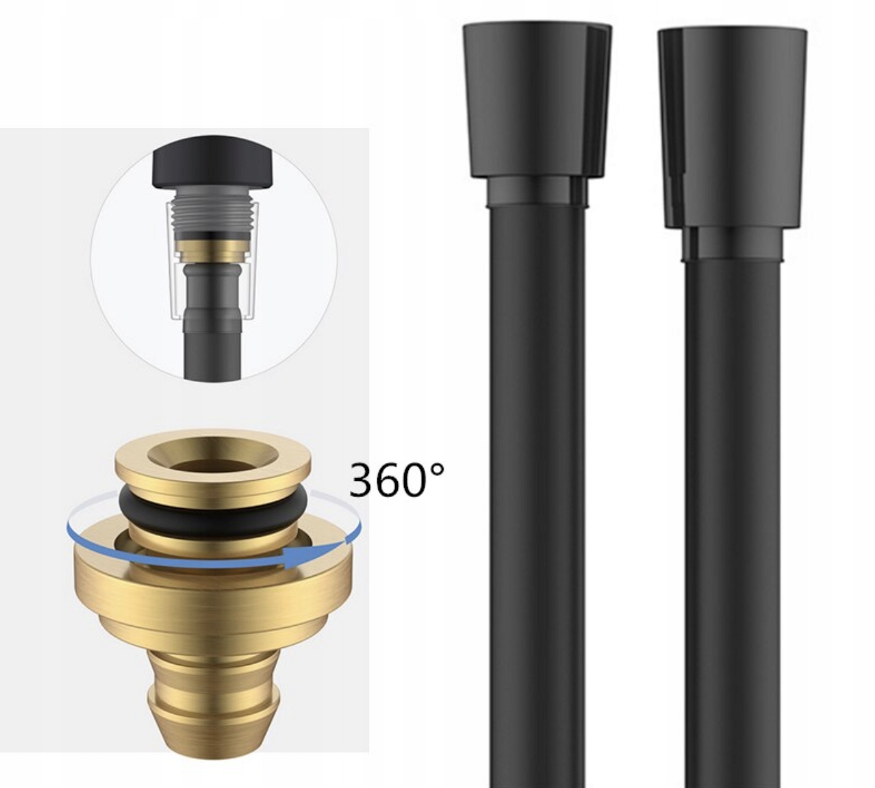 Благодаря резьбе, которая позволяет концам вращаться, шланг становится намного более прочным. Тогда мы избегаем изгибов, изломов и трещин.