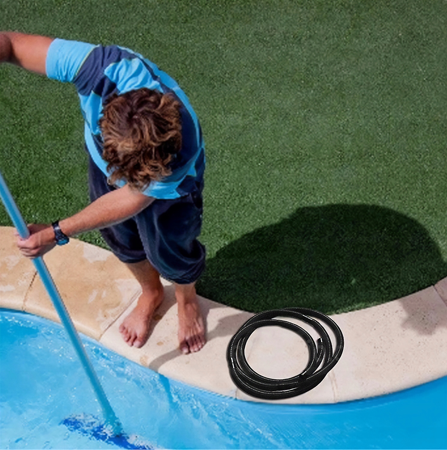 Шланг следует размещать, например, на на траве, брусчатке или на крыше рядом с бассейном в солнечном месте и установите его за фильтром и насосом. Вода, текущая через черный гофрированный шланг, нагревается благодаря поглощаемому солнечному свету, как солнечная панель. Чем дольше участок шланга подвергается солнечному излучению, тем теплее вода, возвращающаяся в бассейн. Благодаря отличным впитывающим свойствам вы можете повысить температуру воды в баке экологически чистым и бесплатным способом.