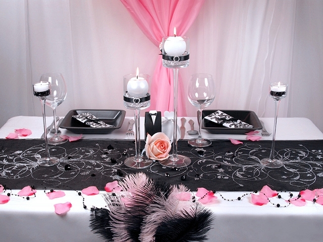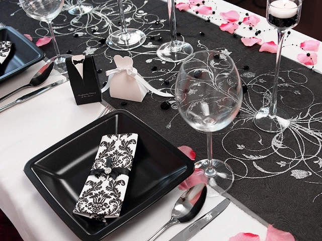 Черный серебряный органза Элегантный Проход для стола.