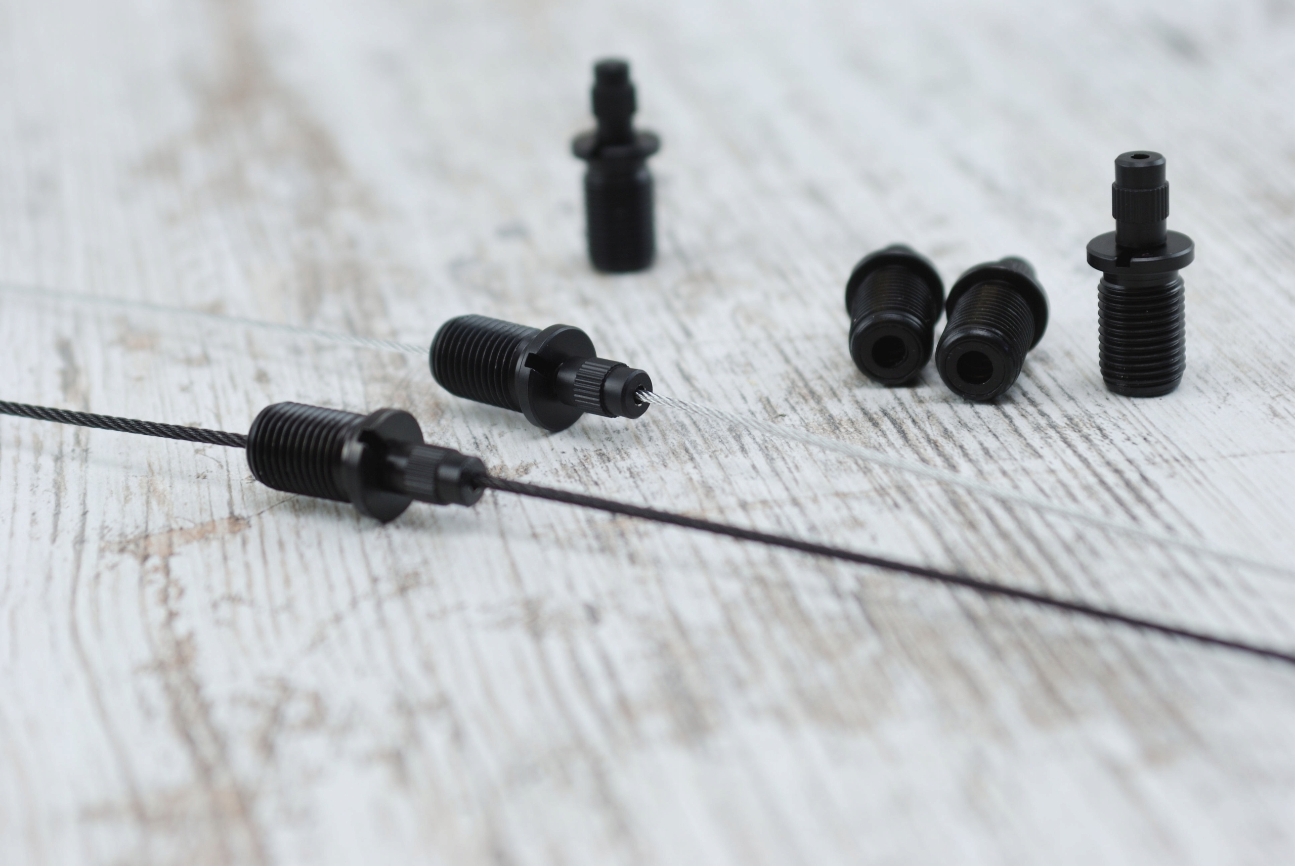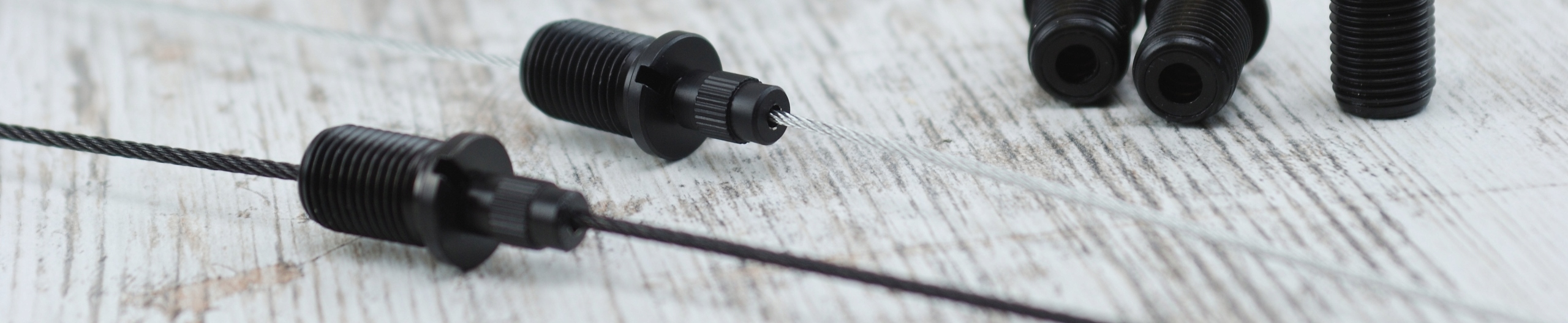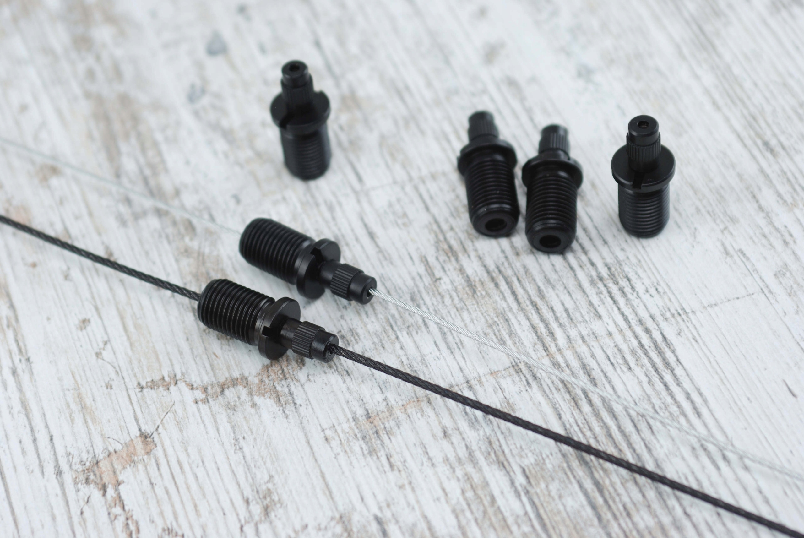Черный стопор-зажим для стального троса с ламповой резьбой М10х1