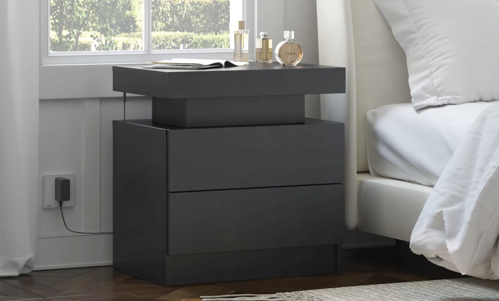 ✅ Стильная прикроватная тумбочка с светодиодной RGB-подсветкой, придающая спальне современную атмосферу