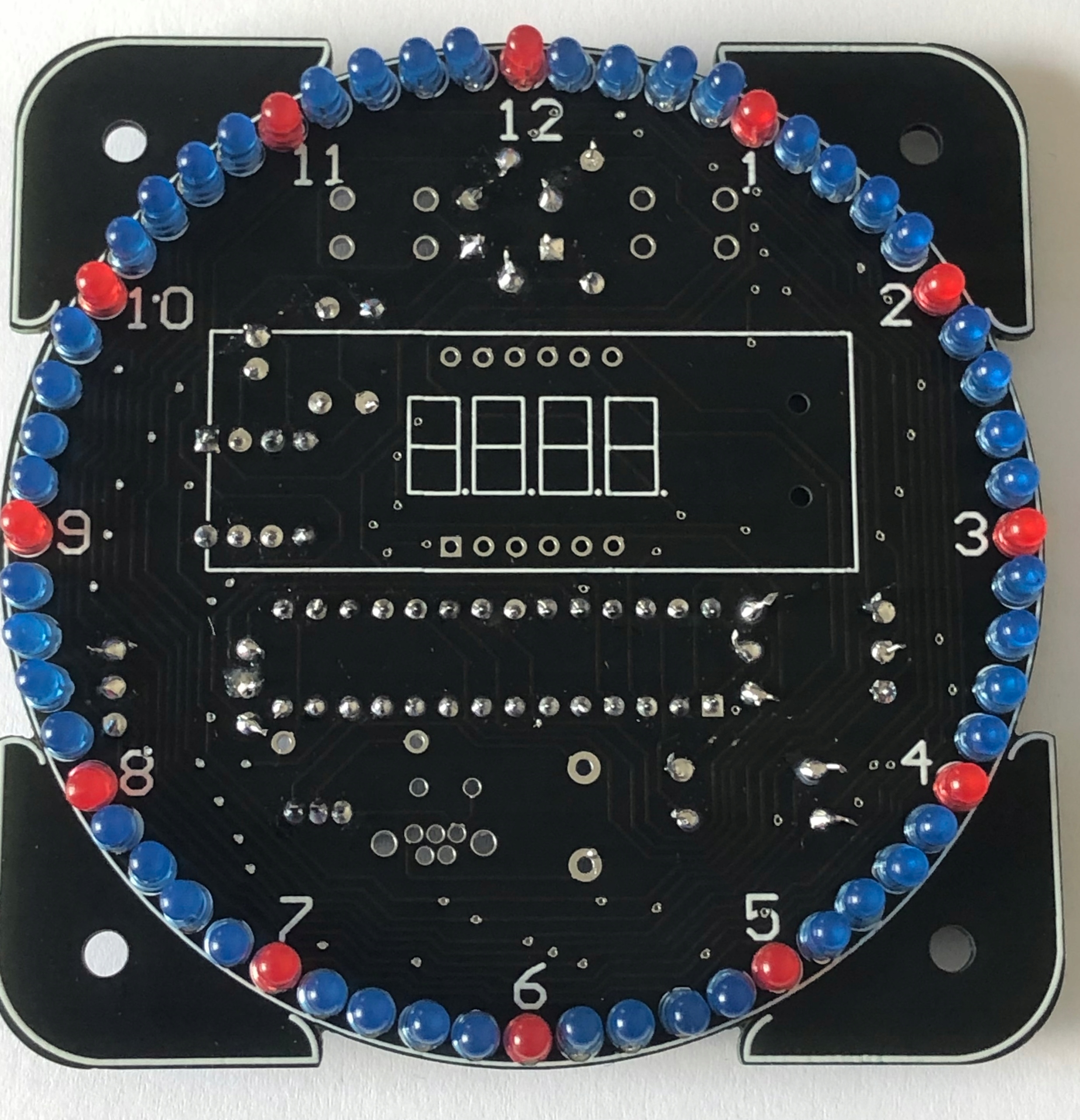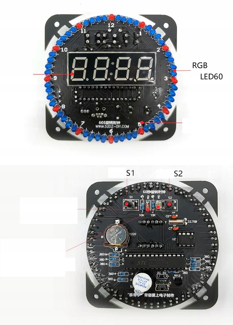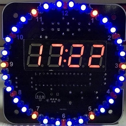 Дисплей красного цвета, слот для батарейки, поддерживающей время при сбое питания. Батарейки в комплект не входят.