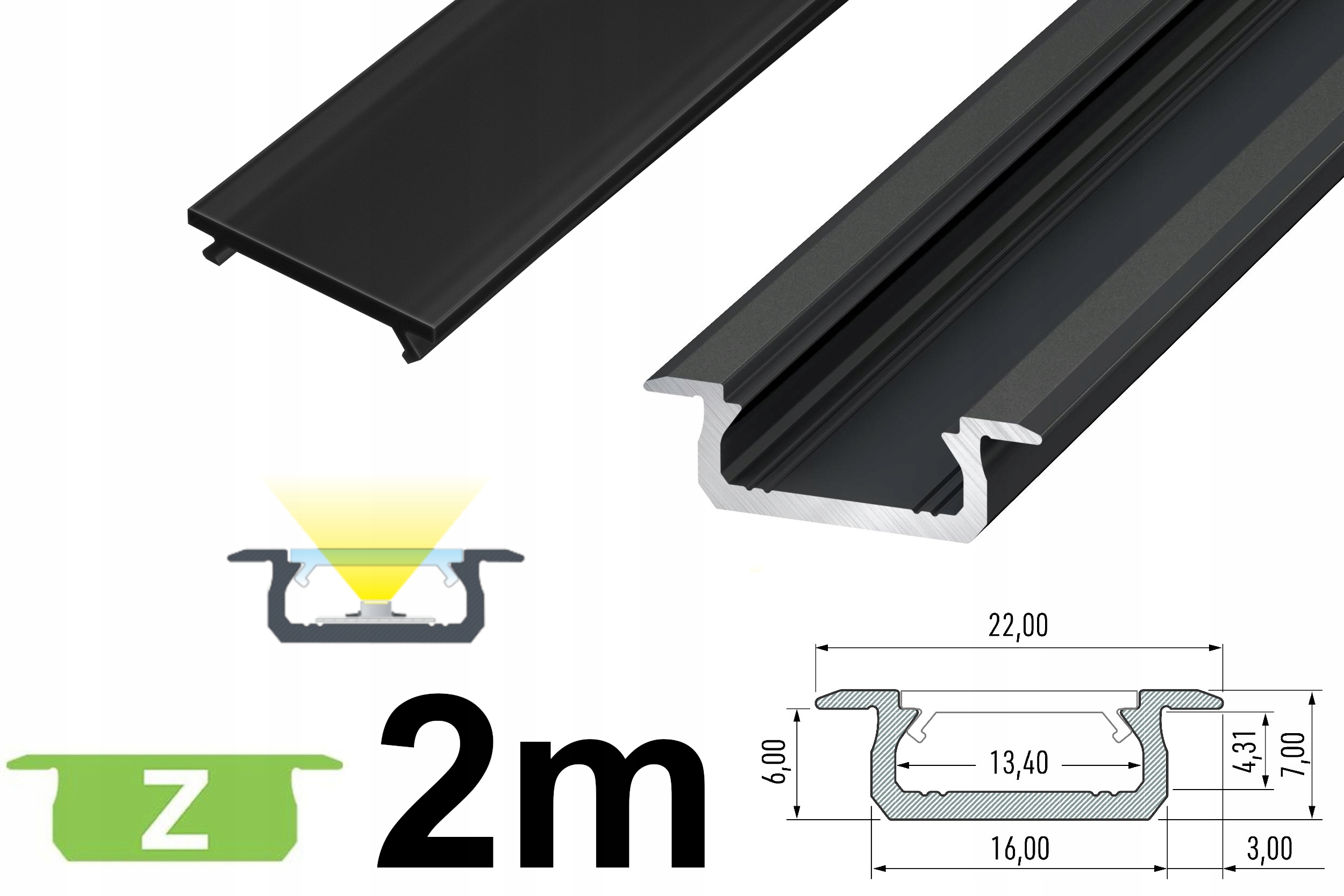 ЧОРНИЙ СВІТЛОДІОДНИЙ ПРОФІЛЬ З ЧОРНОЮ ЛЕЖКОЮ ТИП Z 2M