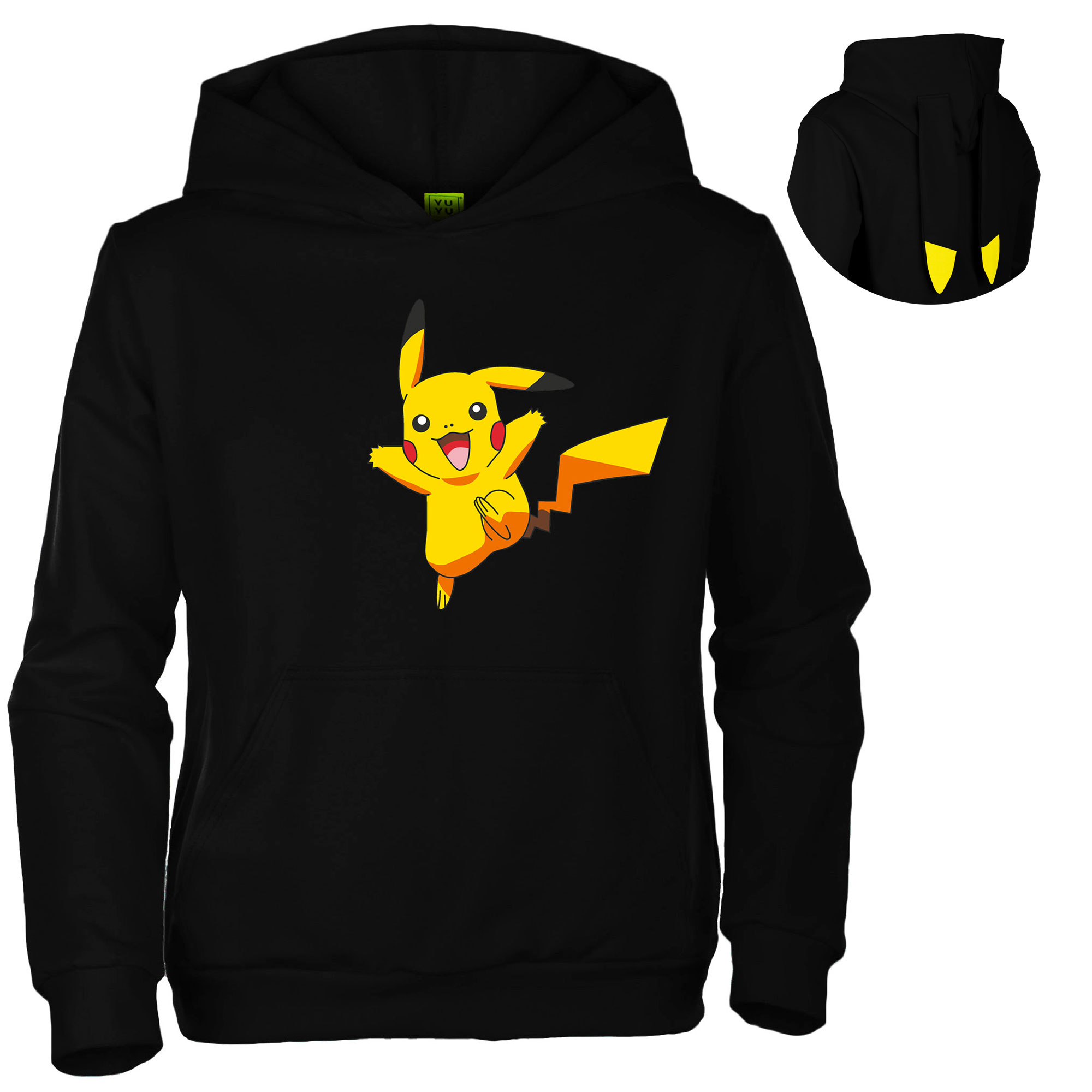 ЧЕРНАЯ ТОЛСТОВКА КЕНГУРУ С УШАМИ + КАРМАНОМ PIKACHU 140/146 OE