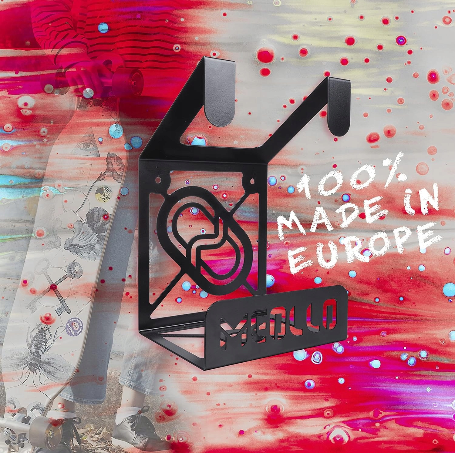 Технология, поддерживающая систему противовеса. Небольшой, элегантный и современный дизайн. Идеальный подарок для любителей спорта. Этот держатель стены подходит для всех размеров и весов. Это идеально подходит для украшения внутри и снаружи. Держатель стены для Longboard 100% сталь - сделан в Европе.