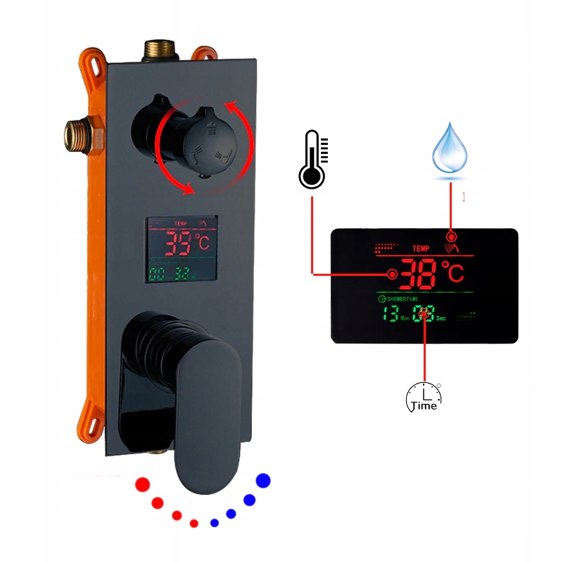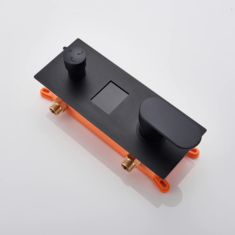 Стильный и современный душевой набор в матовом черном цвете - ВЕРСИЯ С ЖК-ДИСПЛЕЕМ, С ПОДСВЕТКОЙ СВЕТОДИОДНАЯ РАДУГА, МЕТАЛЛИЧЕСКИЕ РУЧКИ ДЛЯ ДУША И ДОПОЛНИТЕЛЬНЫЙ РЕГУЛИРУЕМЫЙ ИЗЛИК + СКРЫТЫЙ СМЫВАТЕЛЬ ДЛЯ УМЫВАЛЬНИКА + CLICK CLACK
