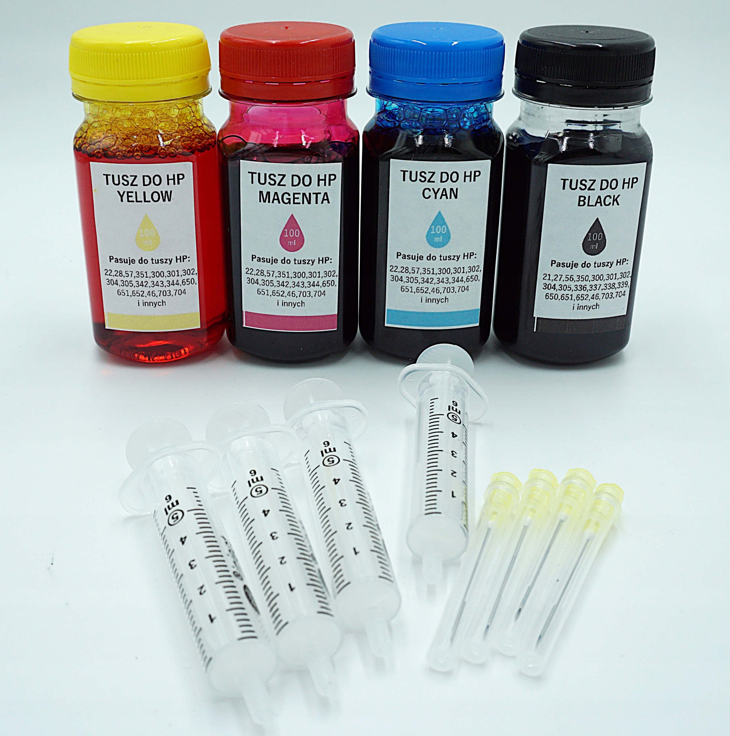 Чернила HP комплект регенерации. В комплект входят четыре чернила по 100 мл черного, красного, желтого и синего цветов, а также набор шприцев и игл, благодаря которым вы можете легко регенерировать чернила. Флакона хватает на заправку картриджа около 20 раз с функциональной головкой. Благодаря высокому качеству пигмента регенерированный картридж позволяет осуществлять качественную печать в черно-белом и цветном режиме.