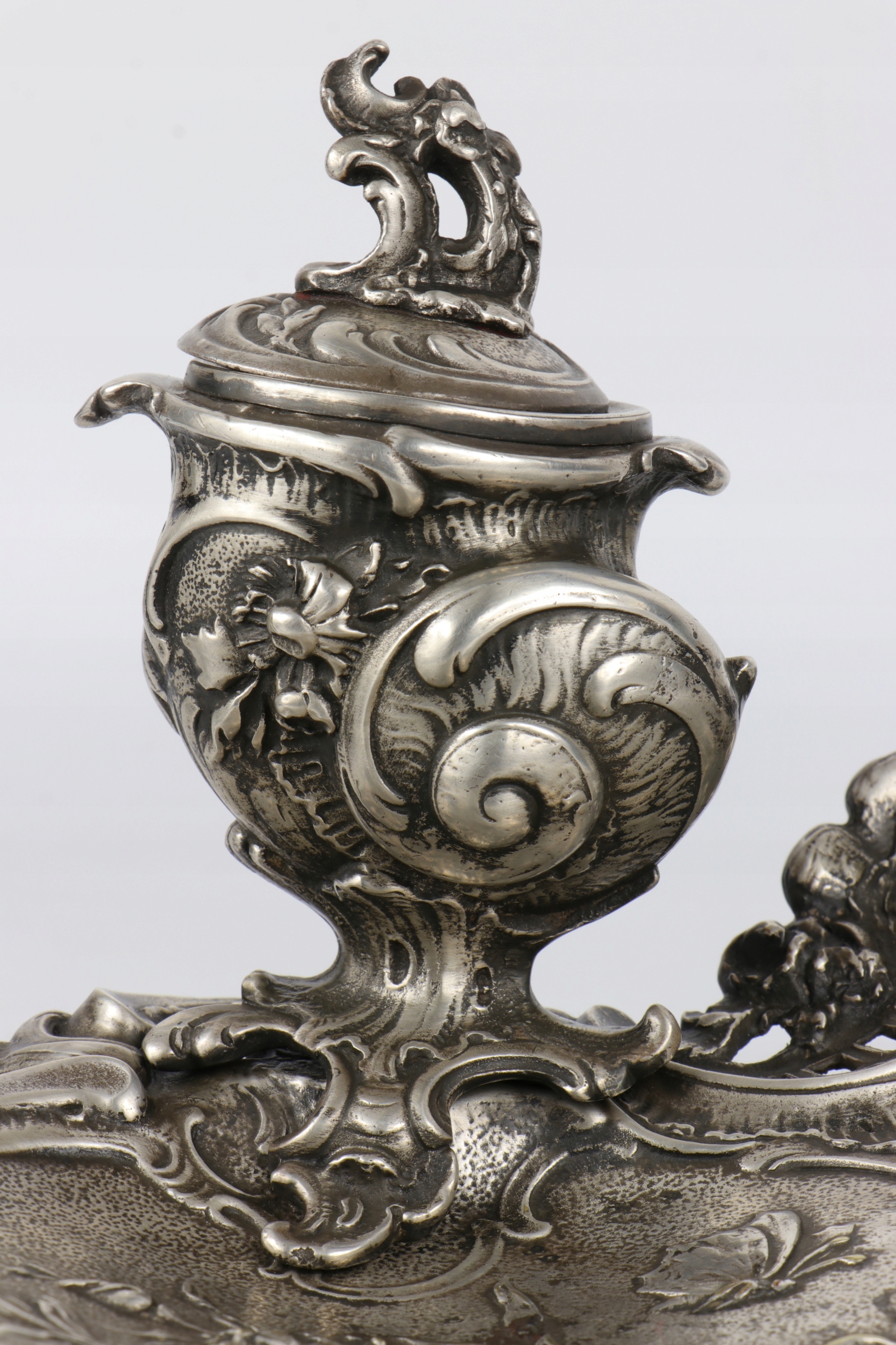 Чернильница в стиле неорококо, бронза, посеребренная латунь, 1890 г. Антиквариат.