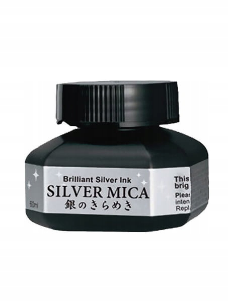 kurtake mica silver - это серебряные чернила для каллиграфии с частицами слюды. Идеально подходит для каллиграфии, он хорошо работает как на легкой, так и на темной бумаге. Сильно непрозрачные водяные чернила, также подходящие для покраски тканей