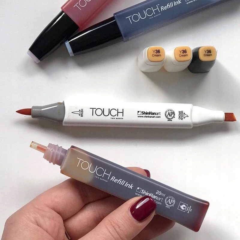 Высококачественный картридж с чернилами для маркеров TOUCH Twin Marker и TOUCH Twin Brush Marker. Чернила изготовлены на спиртовой основе, не имеют запаха, нетоксичны и устойчивы на большинстве поверхностей. Стабильность цвета гарантирована для каждой бутылки. На флаконе указана мерная чашка, поэтому вы точно знаете, сколько туши вы заправляете. Одного флакона объемом 20 мл хватает на 7-8 заправок.