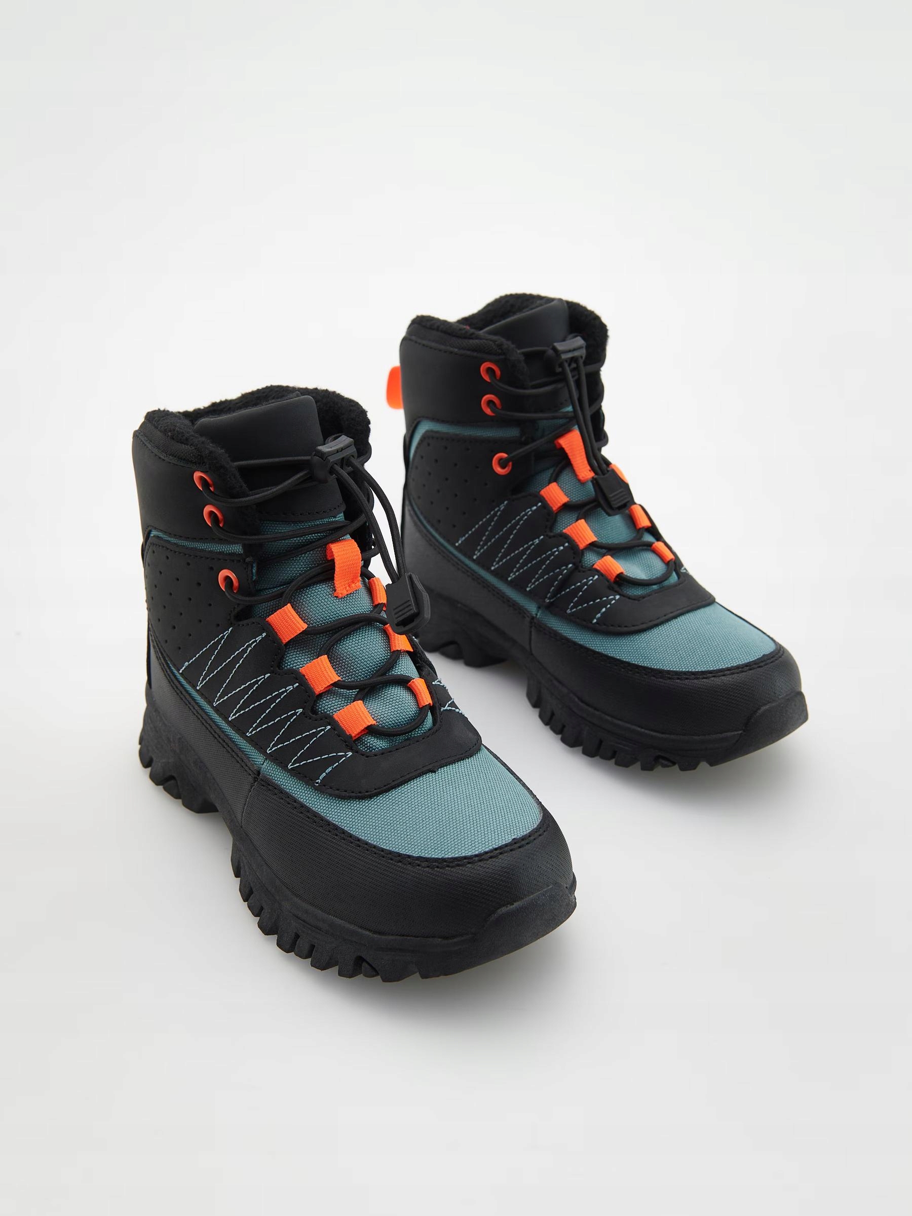 Черная и синяя изолированная с высокой пролаженной треккинговой обувь 31