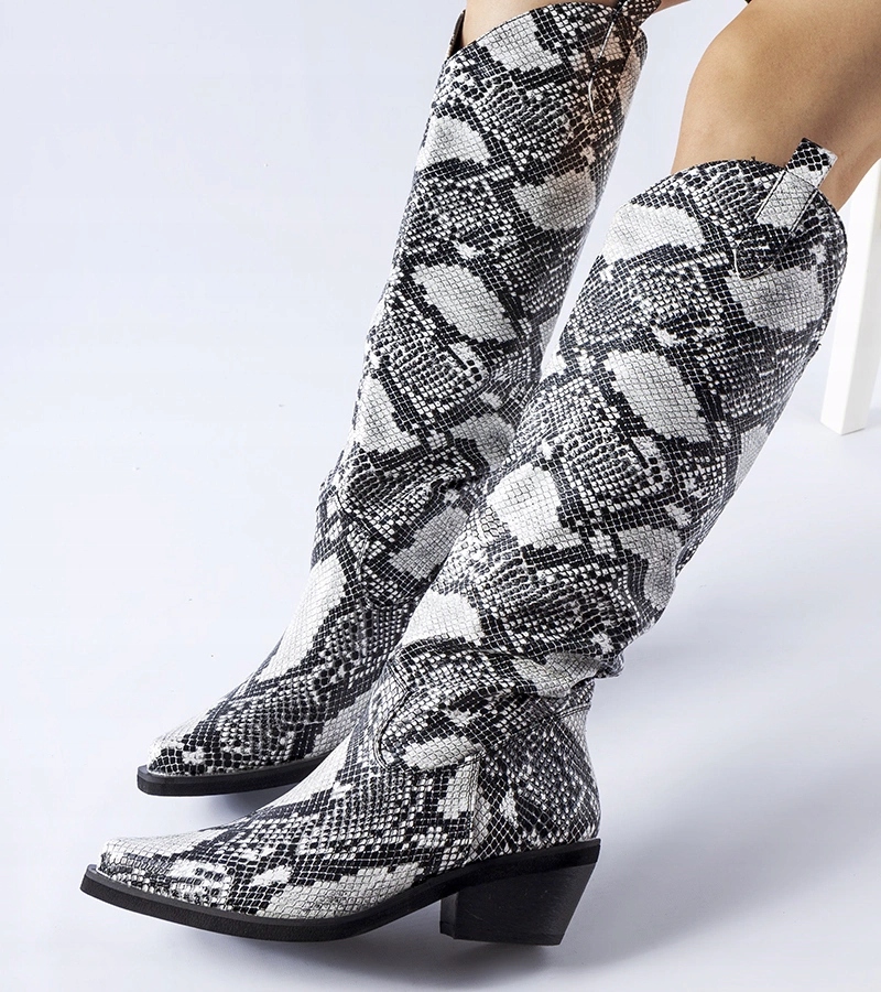 Черно-белые ковбойские сапоги со змеиным принтом от Chapin