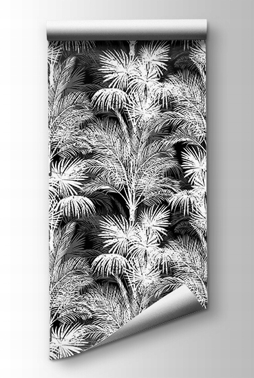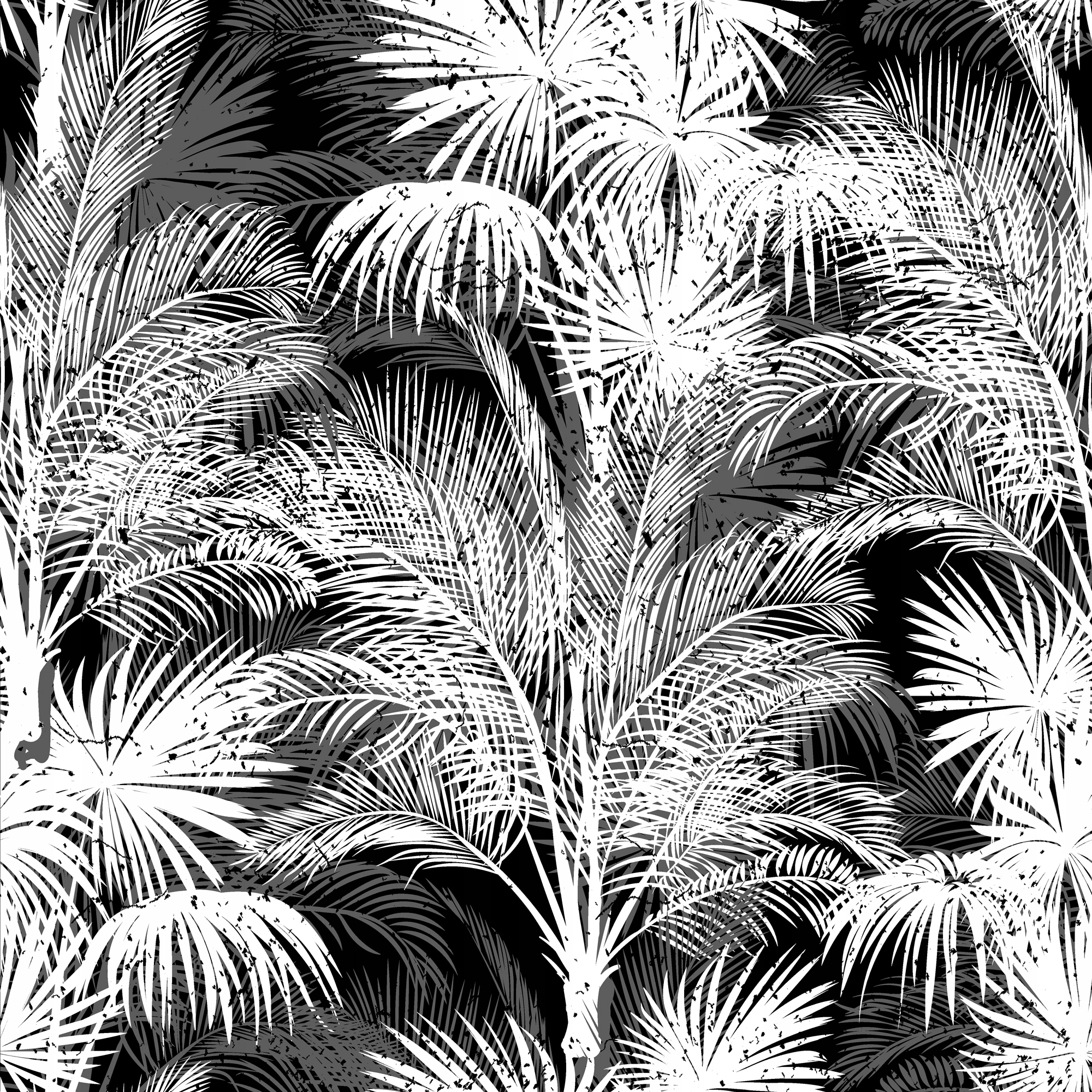 ЧЕРНО-БЕЛЫЕ ОБОИ С ТРОПИЧЕСКОЙ ПАЛЬМОЙ, ЛИСТЬЯМИ, ГРАФИЧЕСКИМ ЛЕСОМ, ДЖУНГЛЯМИ, ДЕРЕВЬЯМИ 5399al