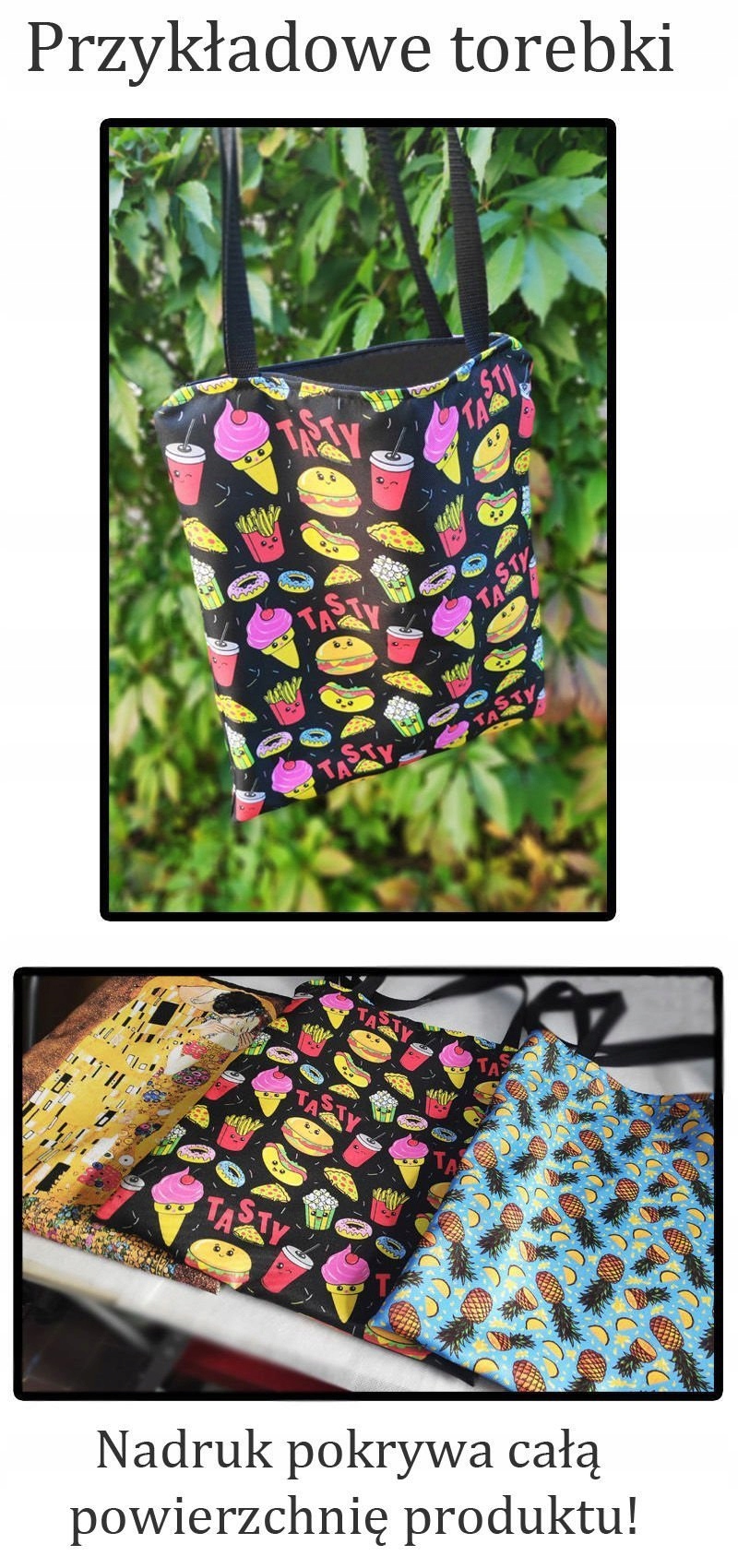 - Принт покрывает 100% поверхности сумки.