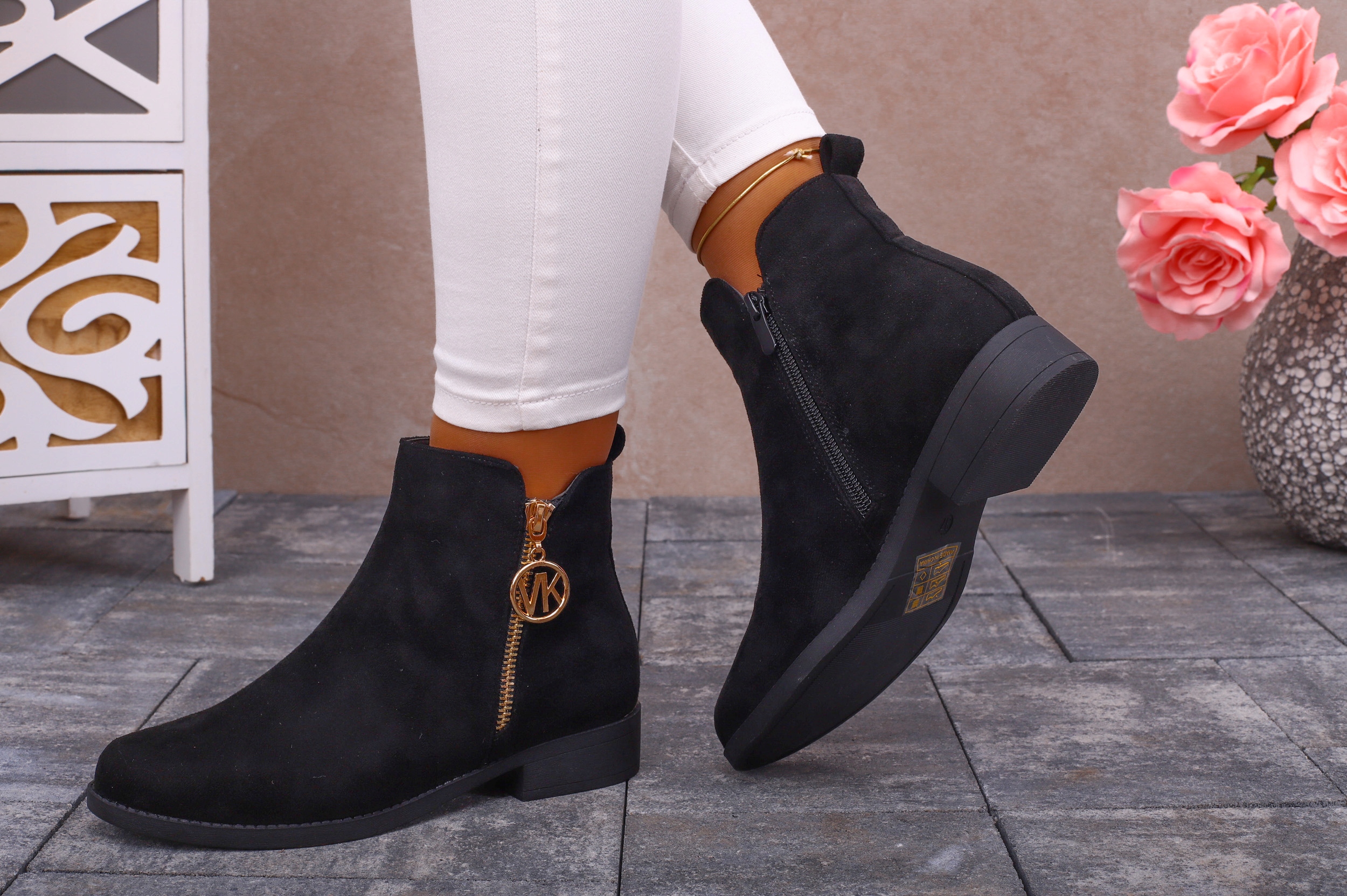 ЧОРОБИ ЖІНОЧІ ЧОРНІ, ЗАМШЕВЕ ВЗУТТЯ НА ПЛОСКІЙ СУШІ