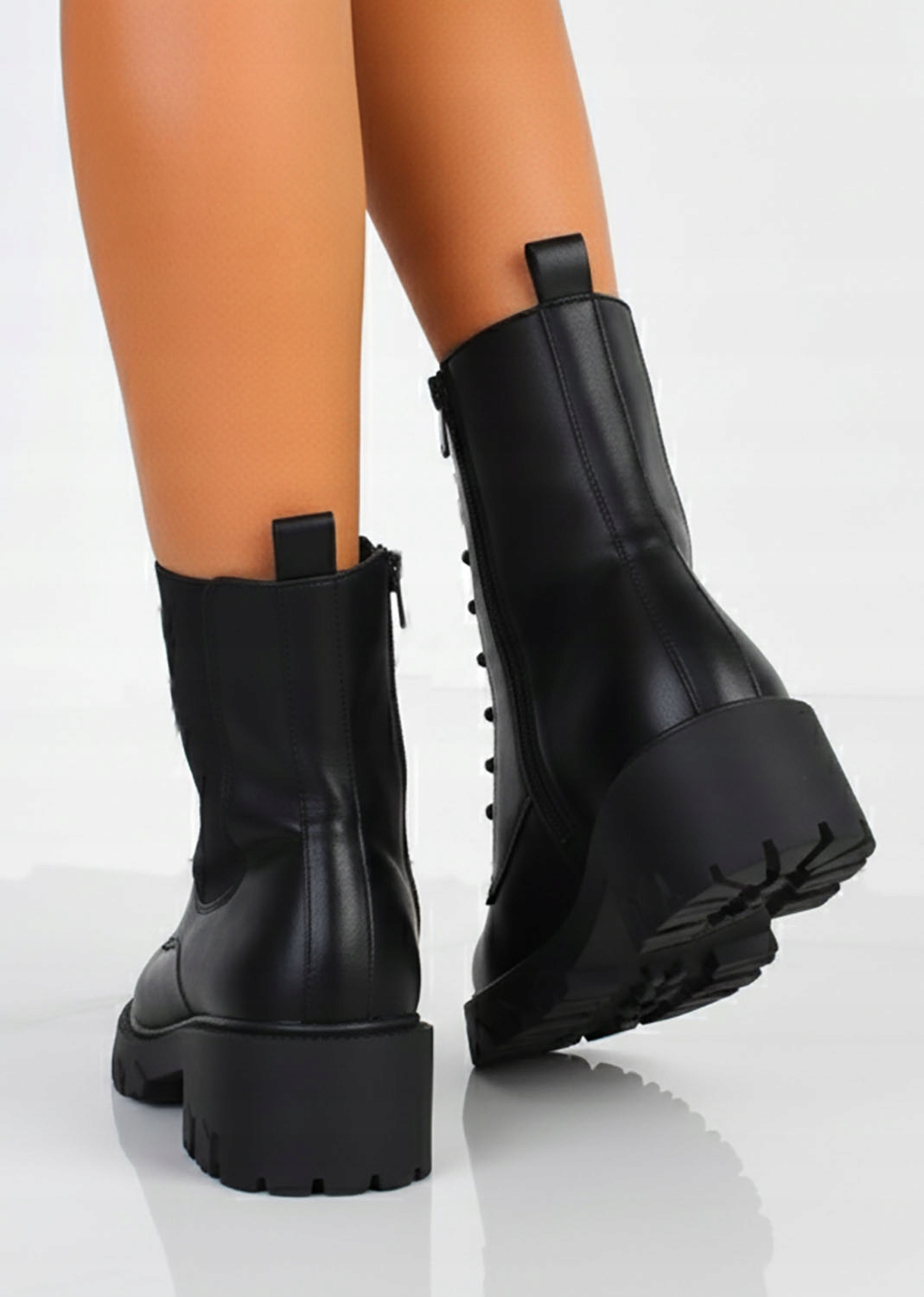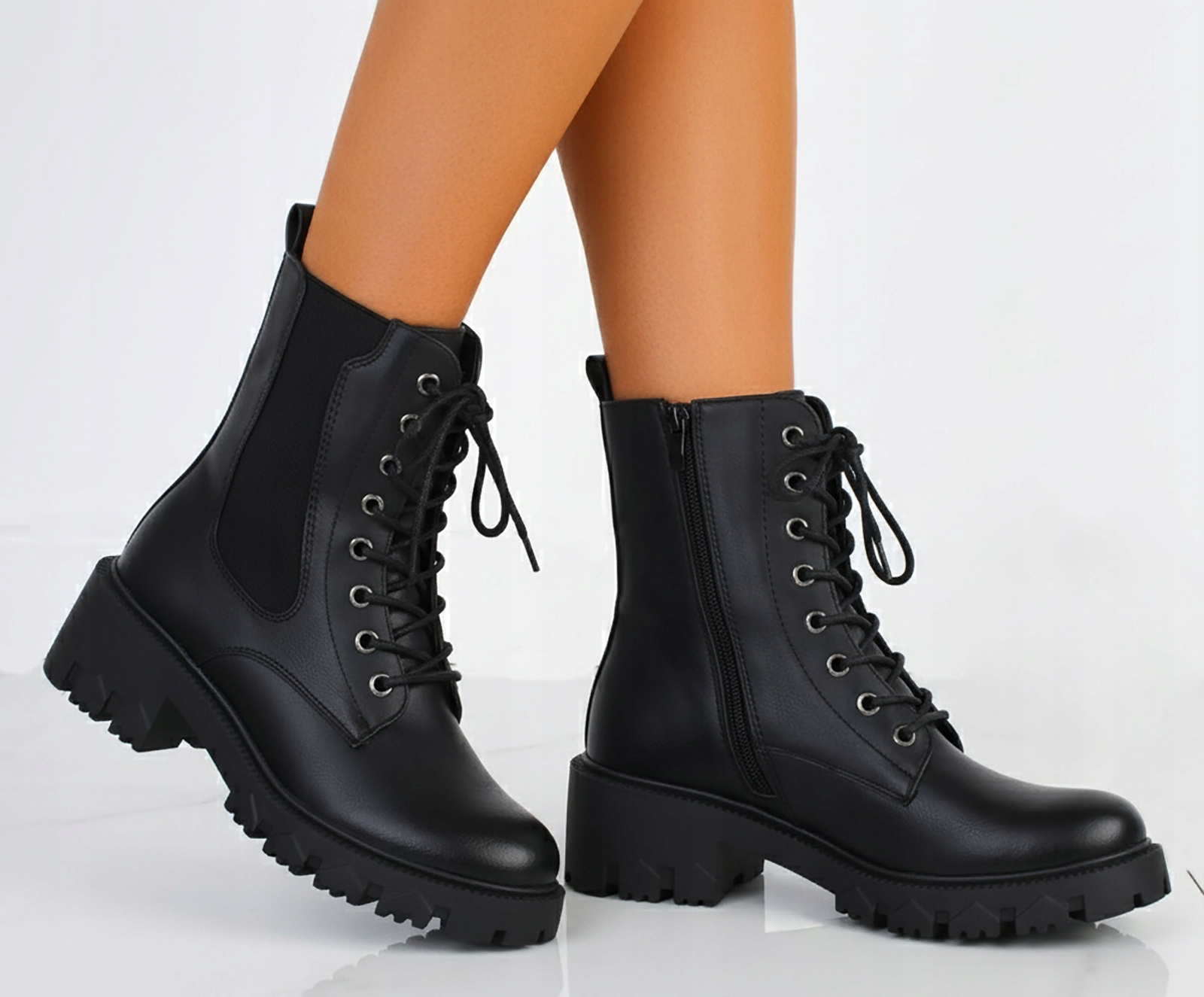 9000 ЧЕРНЫЕ БОТИНКИ НА ПЛАТФОРМЕ, УТЕПЛЕННЫЕ ТРАПЕРЫ, МОЛНИЯ 38