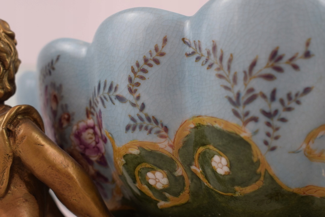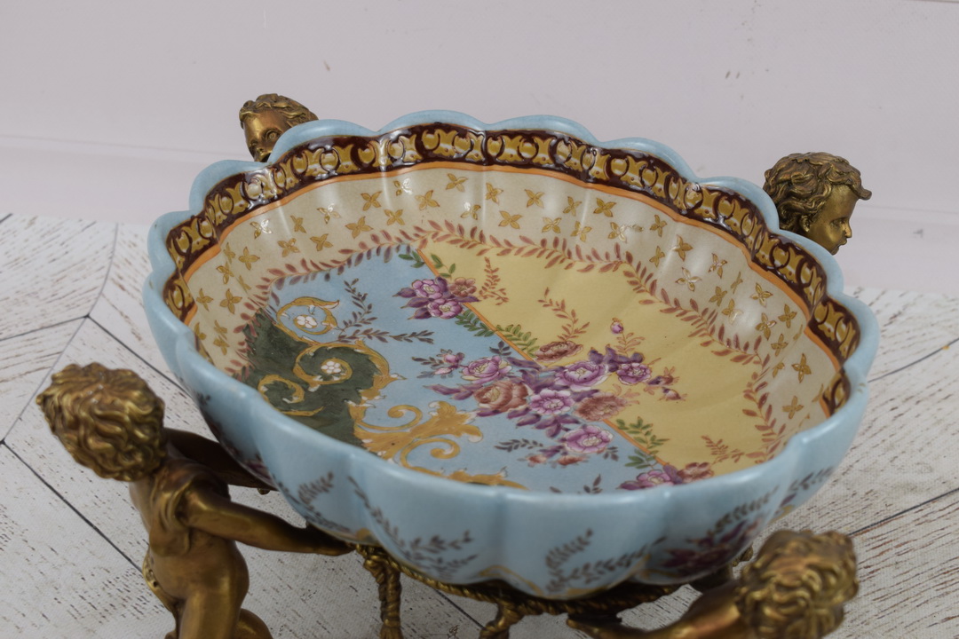 Четыре амора, держащие Patere - фарфоровая патера + бронзовые фигуры