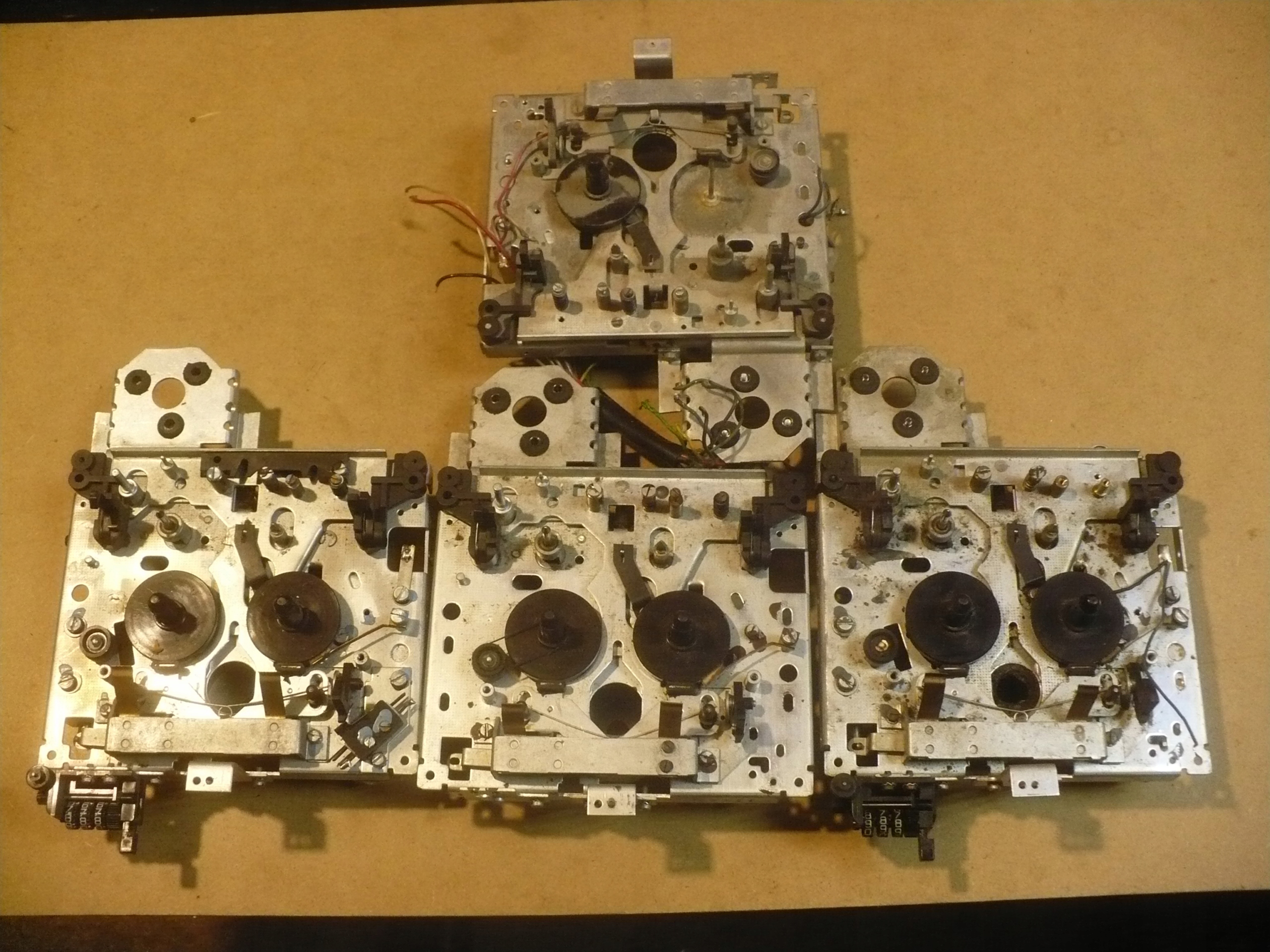 На этом аукционе я предлагаю на продажу комплект из четырех механизмов, а точнее их остатков, используемых в MDS 442 и подобных магнитофонах. Продаю как поврежденный. Цена за комплект с фото