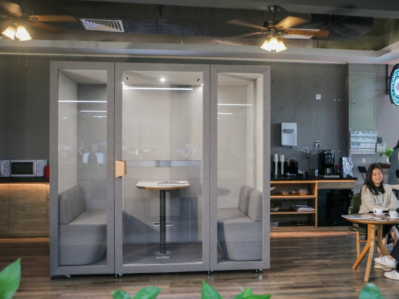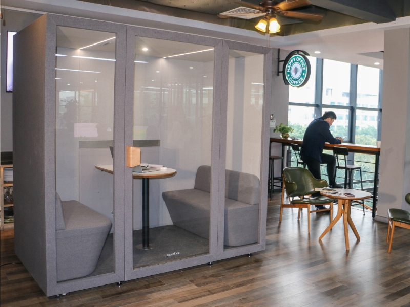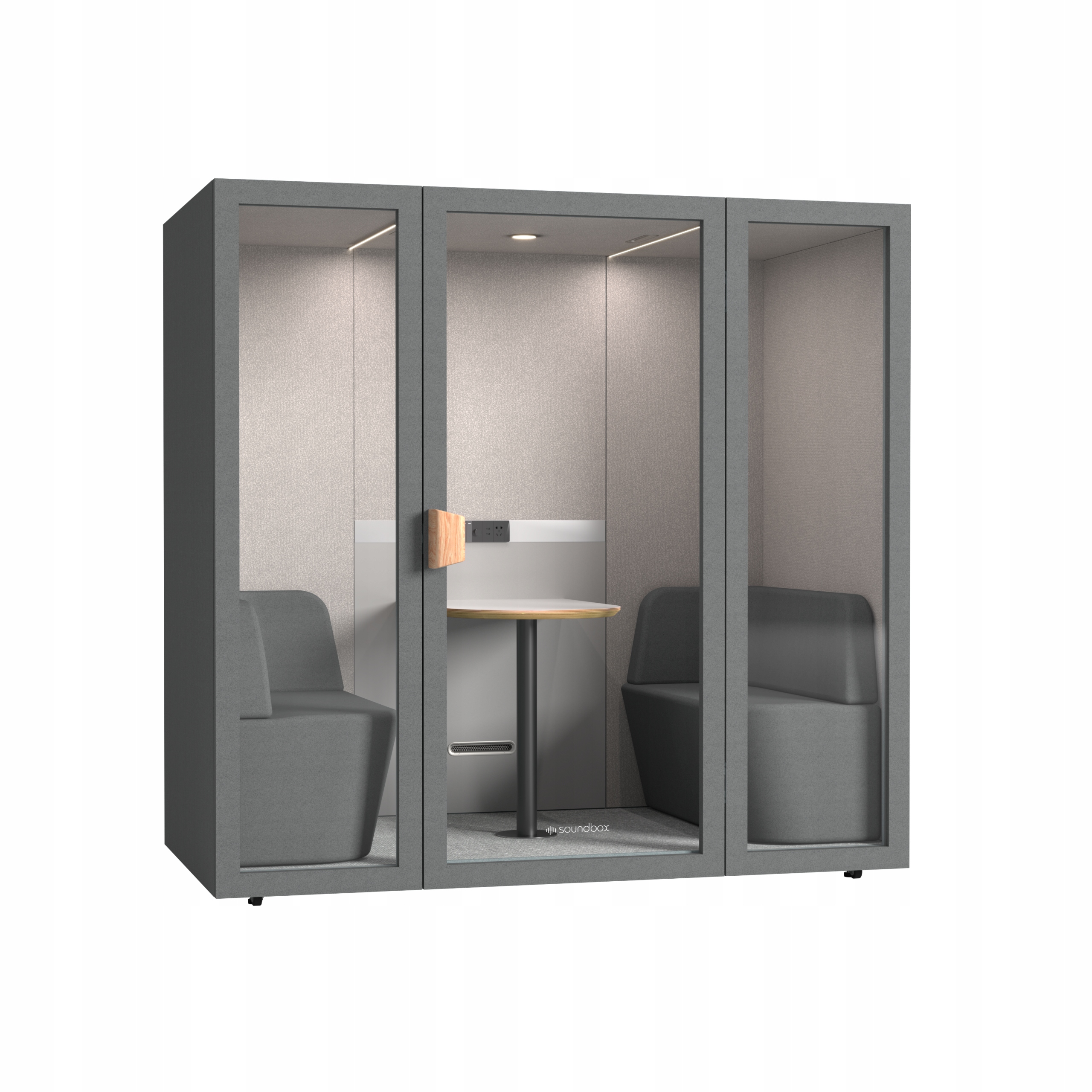 Современная звукоизоляционная акустическая кабина является абсолютной необходимостью в современных интерьерах офисов открытого пространства, офисов, аэропортов, отелей, университетов. Кабина предоставляет возможность провести телефонные звонки или телеконференции в удобных условиях, в которых вы можете сосредоточиться на разговоре и вести его, не беспокоя коллеги. Акустическая кабина из четырех человек обеспечивает удобно звукоизоляционное место для проведения деловых встреч или обучения. Застекленная дверь заставляет кабину выглядеть чрезвычайно легкой и украшает интерьер, в котором она находится. Удобная и практическая акустическая кабина будет работать в современном офисе, характеризуемом инновациями. Кабина была изготовлена из высококачественного сырья, обеспечивающего адекватную звукоизоляцию. Внутренний дизайн и отделка побуждают вас использовать это удобное место, когда возникает необходимость.
