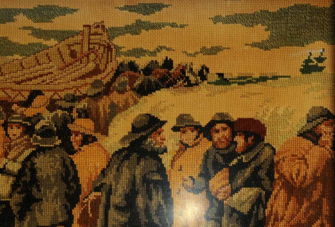 "ЛОДКА, ТРИСУЕМАЯ ЧЕРЕЗ ДЮНЫ" СТАРИННАЯ РУЧНАЯ ВЫШИВКА КАРТИНА ЗА СТЕКЛО!!!