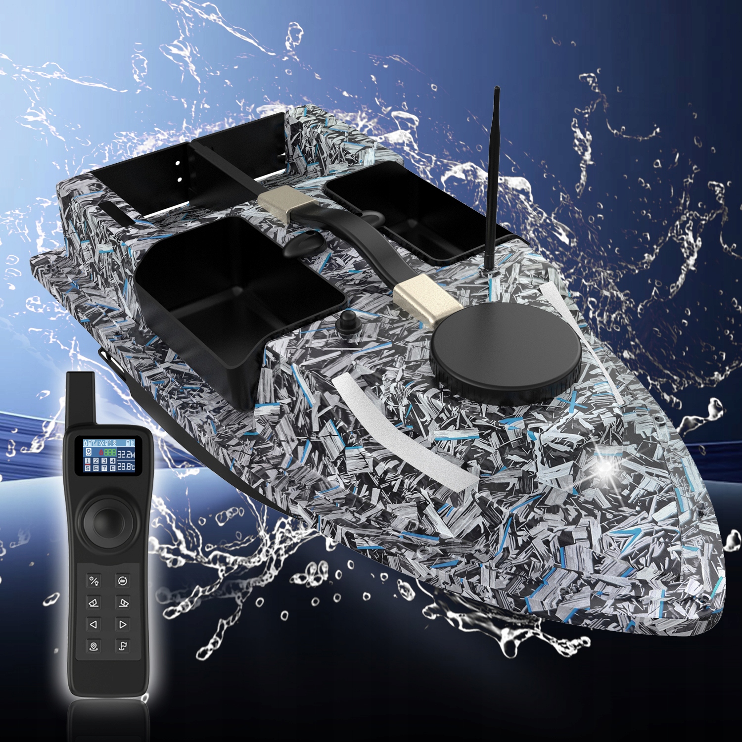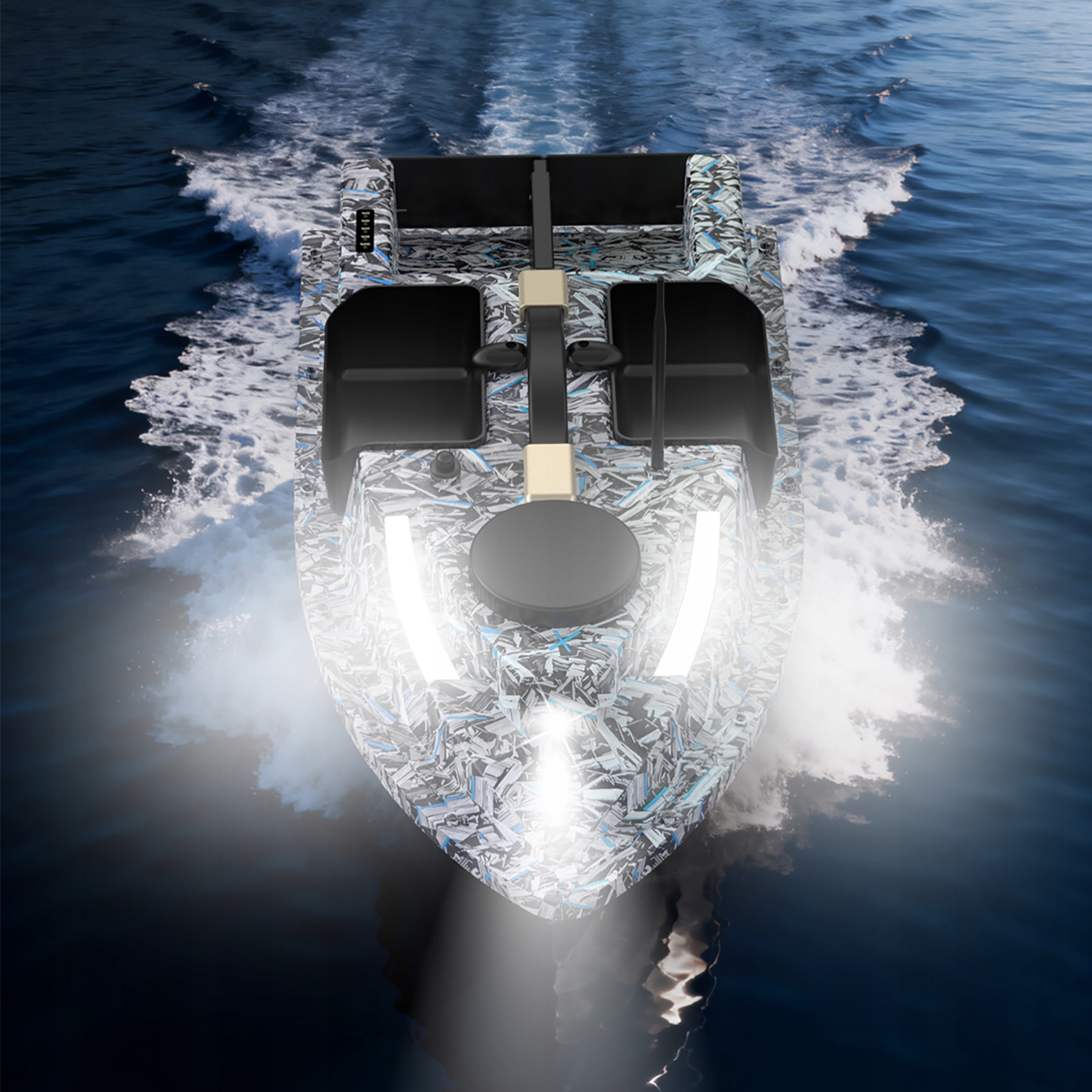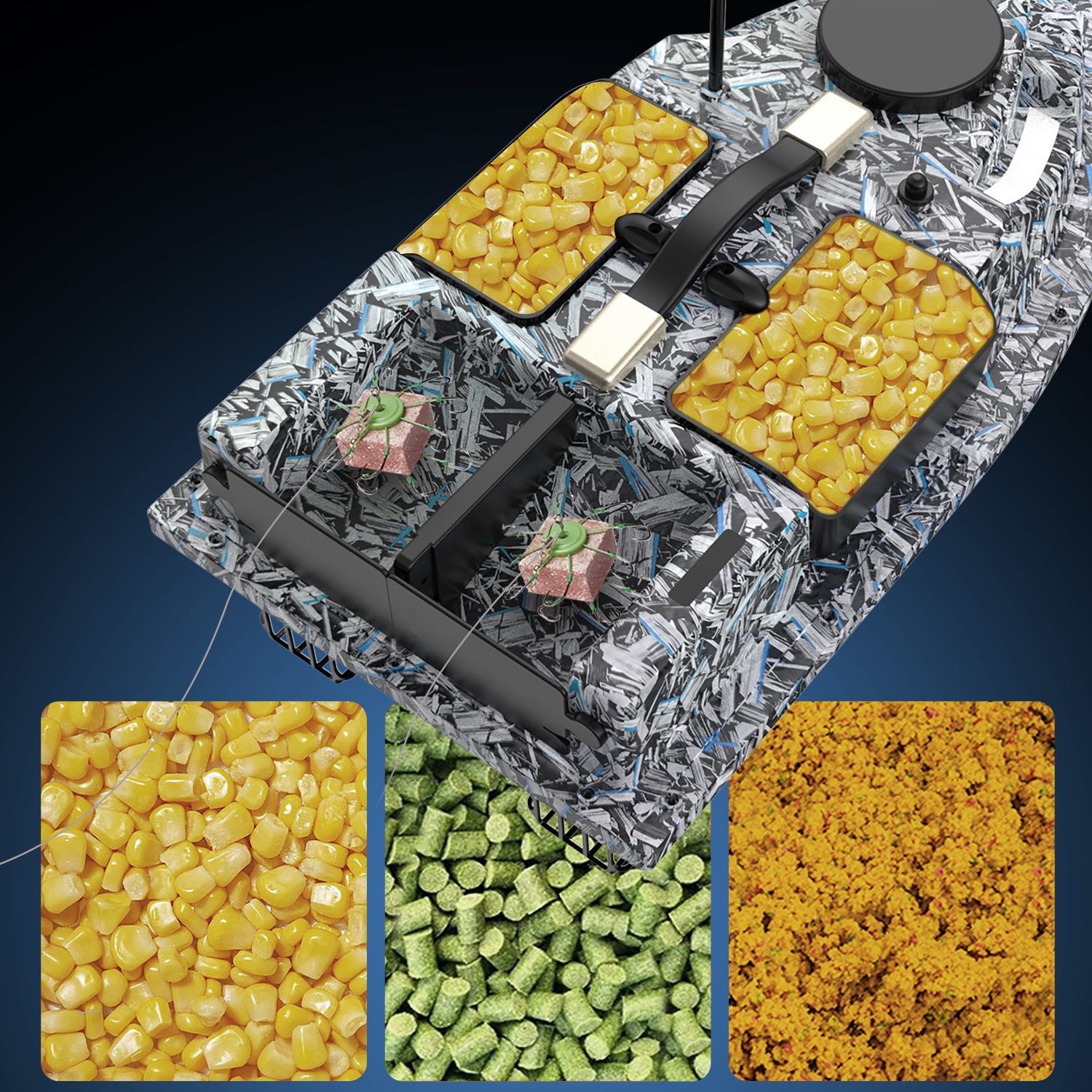✔ Лодка с 4 отсеками для наживки с GPS – Интеллектуальная GPS-навигация с 99 программируемыми точками маршрута, идеально подходит для точной подачи и перетаскивания крючков.