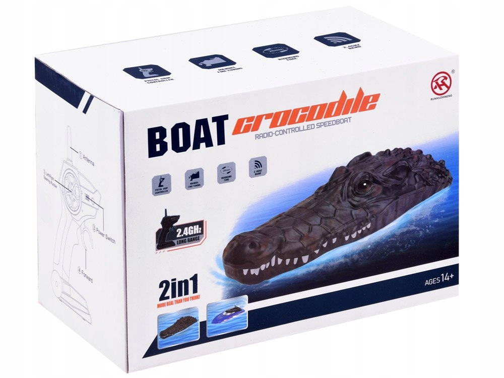 Катер «Крокодил» с дистанционным управлением — это моторная лодка, вызывающая уважение на воде. Игрушку 2-в-1 можно дополнить лодкой чехлом в виде головы крокодила. Форма головы крокодила была воспроизведена очень реалистично. Острые и гладкие зубы, карие глаза и темно-зеленая кожа, покрытая чешуей, напоминают настоящего крокодила. Действительно можно кого-то напугать.