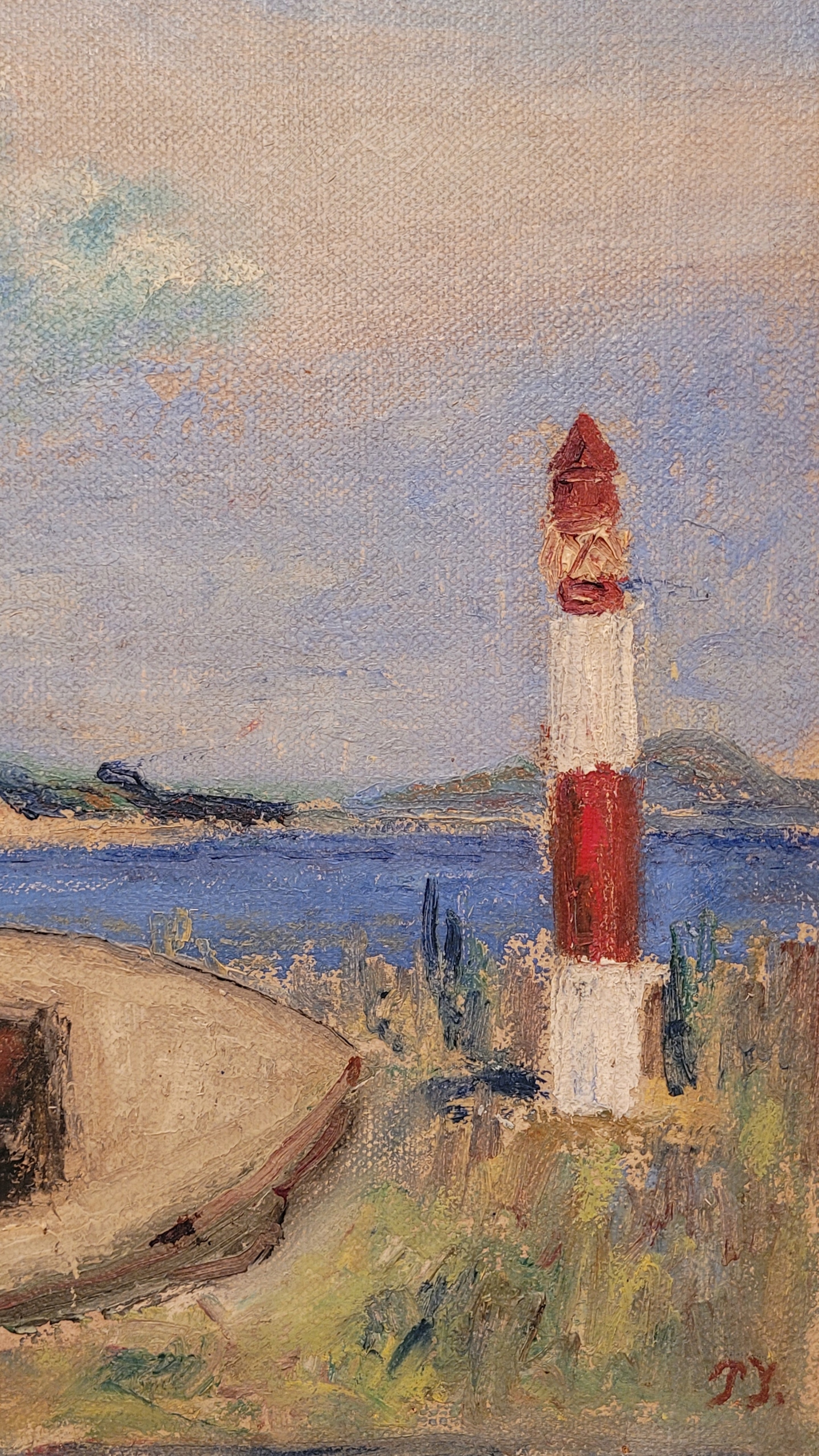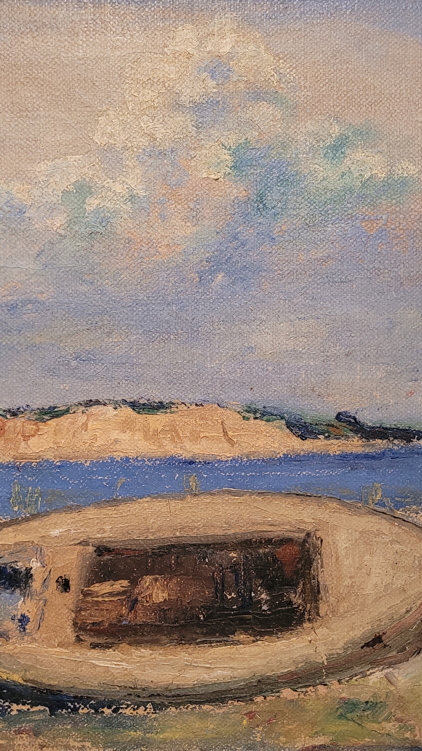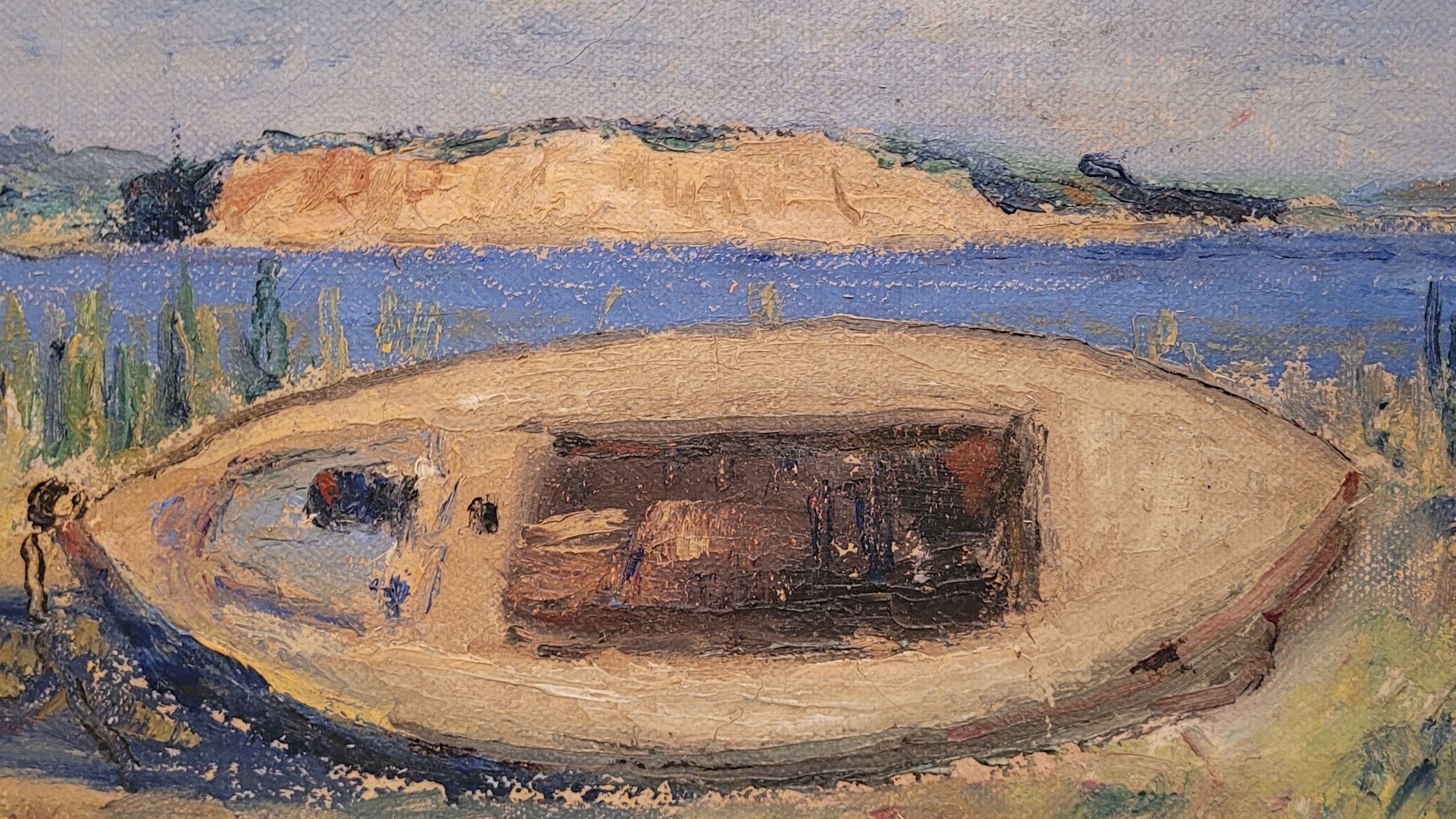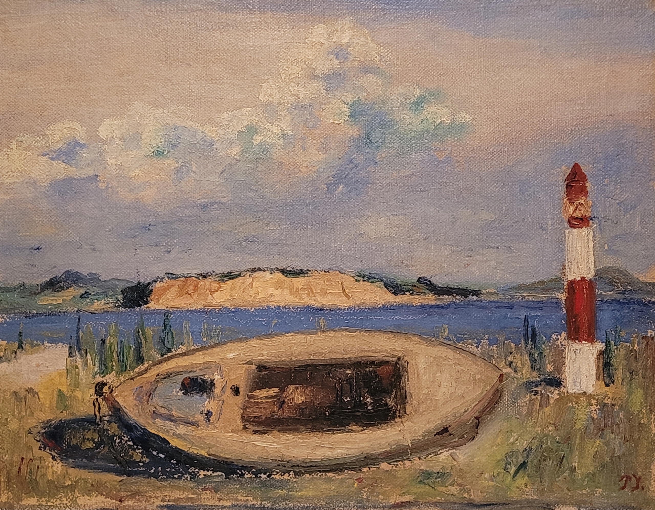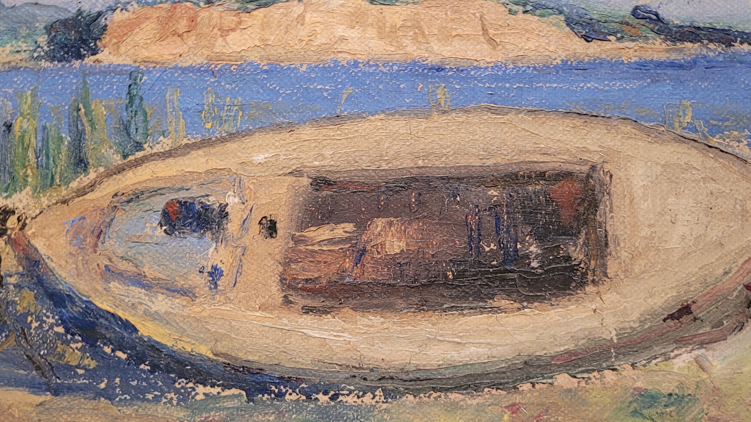 «Лодка на берегу» - старая, подписанная нефтяная картина.