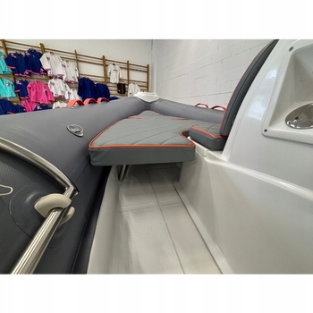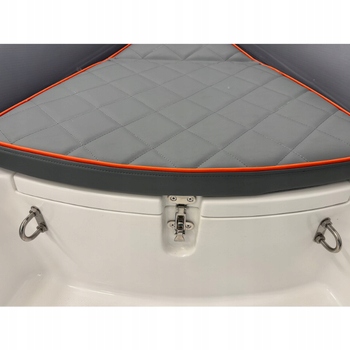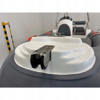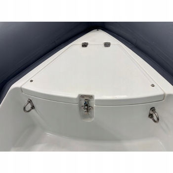 В стоимость данного катера входит: пульт управления (с окном, панелью с переключателями и индикатором топлива), предохранительные клапаны, носовая утка, резиновое усиление киля, рундуки с подушками, ремкомплект, насос, два алюминиевых весла, подножки из стеклопластика, спинка из нержавеющей стали с мягкой отделкой, трюмная помпа, встроенный топливный бак на 50 л, чехол для лодки, бортовая С-образная лестница из полированной кислоты сталь, спойлер из полированной кислотной стали с 3 навигационными огнями, солярий с подушкой.