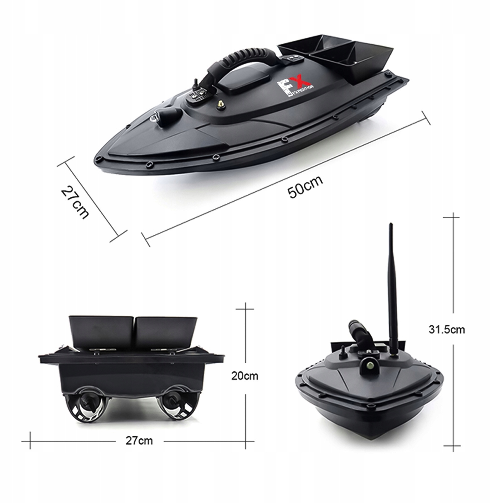 В комплекте: лодочка для прикормки, пульт дистанционного управления, аккумулятор, зарядное устройство, сумка для лодки