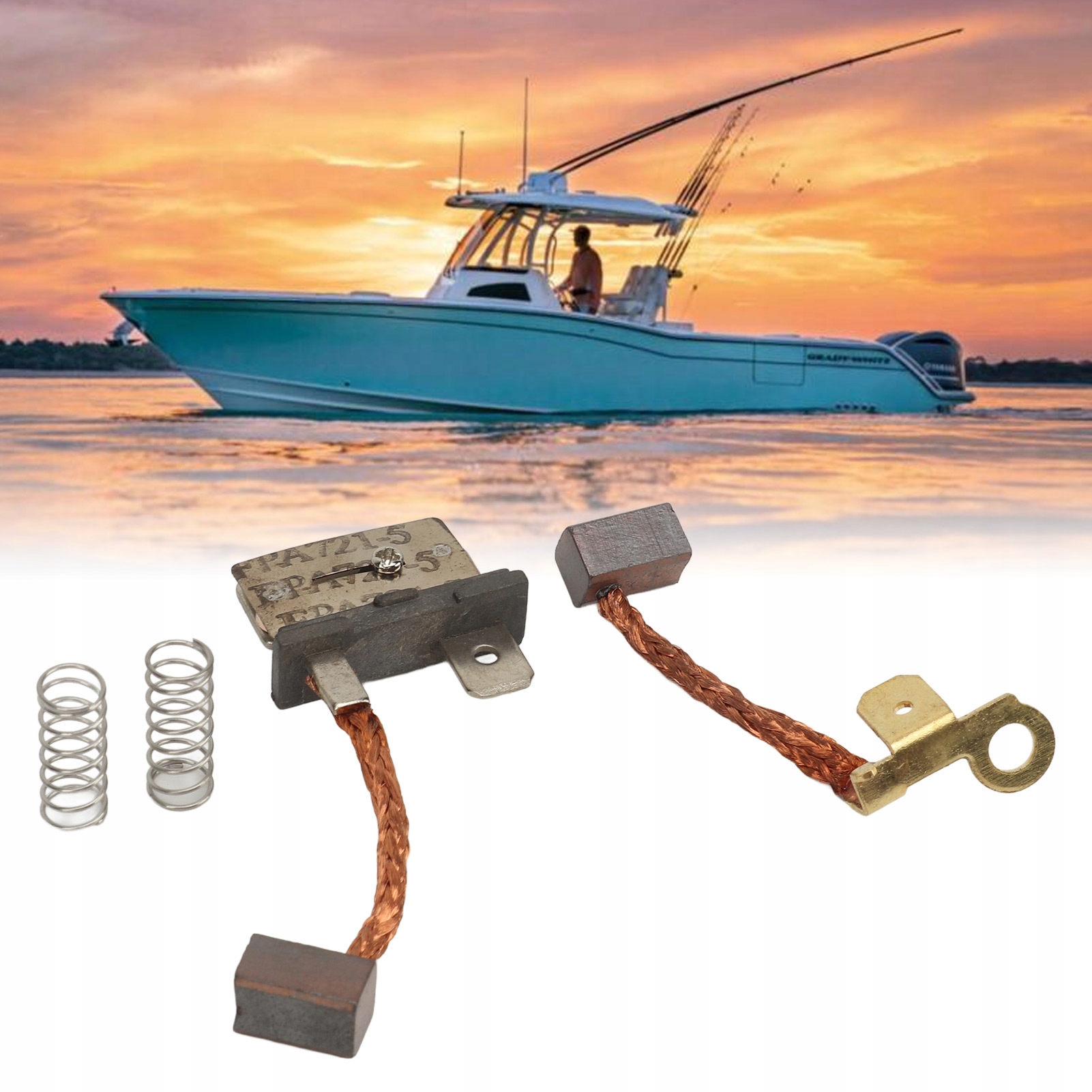 3 (Материал премиум-класса) Комплект угольных щеток подвесного мотора, изготовленный из металла и медного сплава, обеспечивает превосходную долговечность, надежность и износостойкость, что делает его долговечным дополнением к вашему лодочному двигателю.