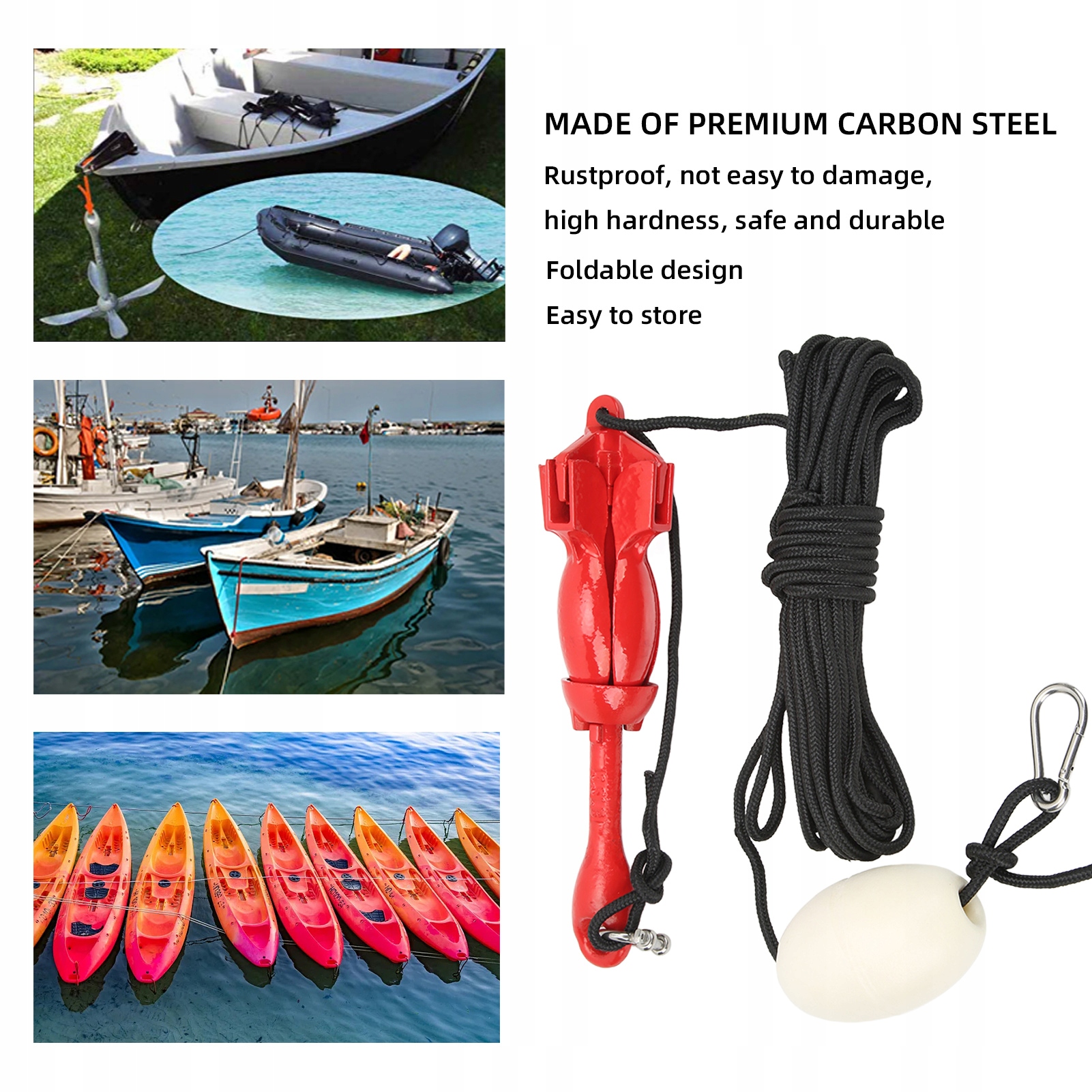 5. Легко носить с собой: полный комплект якоря для лодки включает складной якорь, буксирный трос длиной 12 м/39,4 фута, плавучий шар и удобную сумку для хранения.