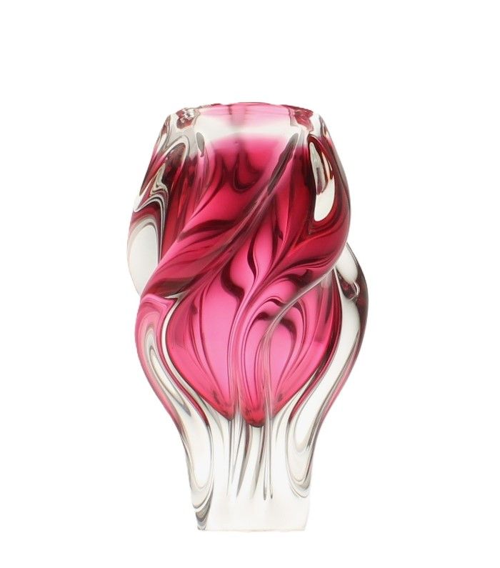 ваза с спиральной формой. Сделано из ручного сформированного, двойного стекла, из внутреннего цвета в массе розового. Старная база. Ваза поступает из Чехословакии из Хуты Шкла Крибски. 70xxw.