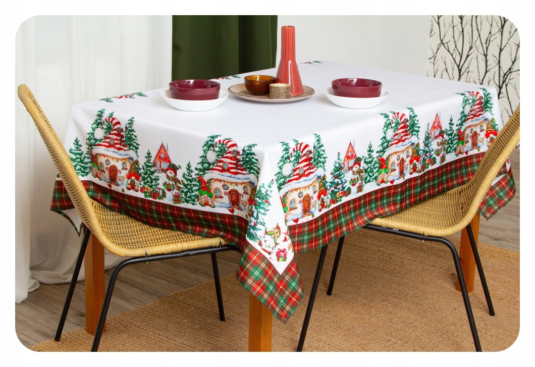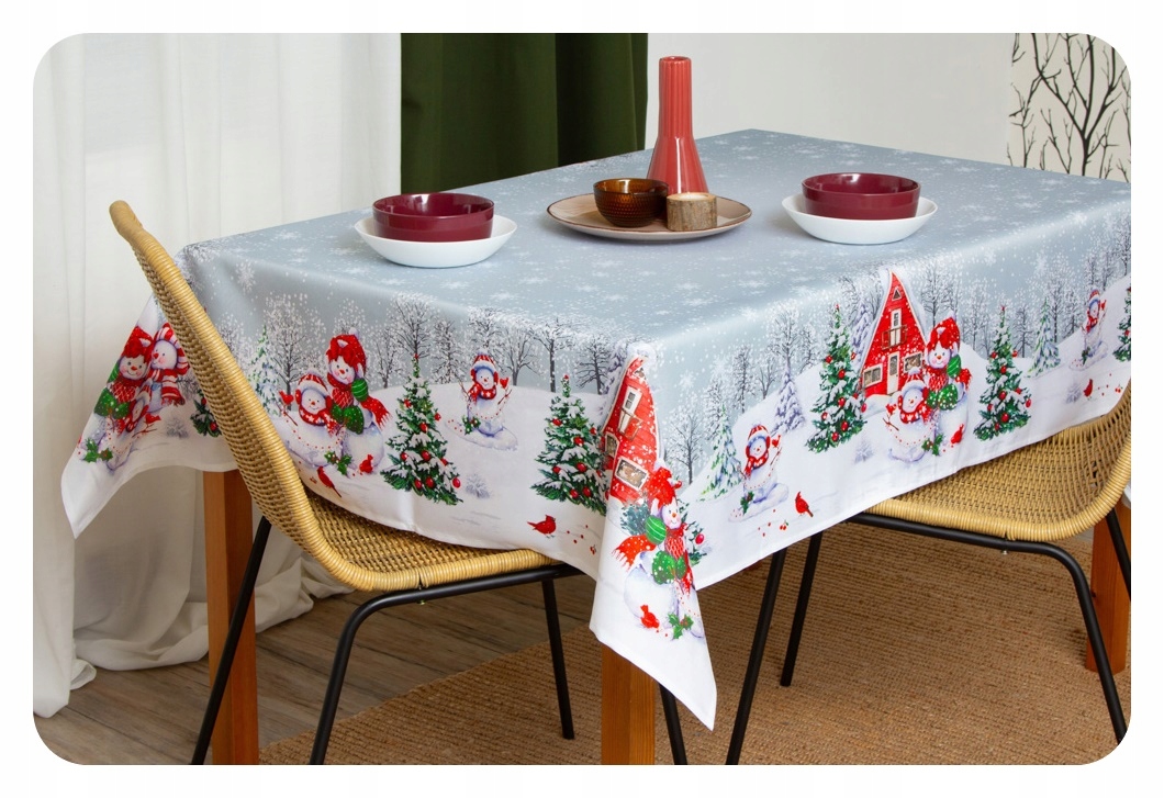 - ⭐️Зимние елки: Зеленые елки с небольшим количеством снега создают впечатление зимы и придают цвет скатерти.