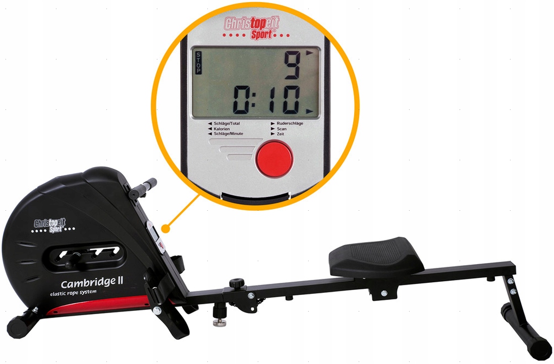 Гребная машина Christopeit Cambridge II, изготовленная с немецкой точностью и с использованием высококачественных материалов, гарантирует безопасное и долгосрочное использование. Тренажер оснащен компьютером с дисплеем, который измеряет и отображает параметры тренировки: время тренировки, количество повторений, повторений в минуту, сумму всех повторений и сожженных калорий. Гребной тренажер оснащен 4-ступенчатой регулировкой сопротивления. Благодаря этому вы сможете подогнать уровень сложности тренировки под свои возможности. Комфорт во время занятий обеспечивают регулируемое седло, плавно перемещающееся по полозьям, и удобные подножки с ремнями. Устройство рекомендовано людям весом до 120 кг и ростом 130-188 см.
