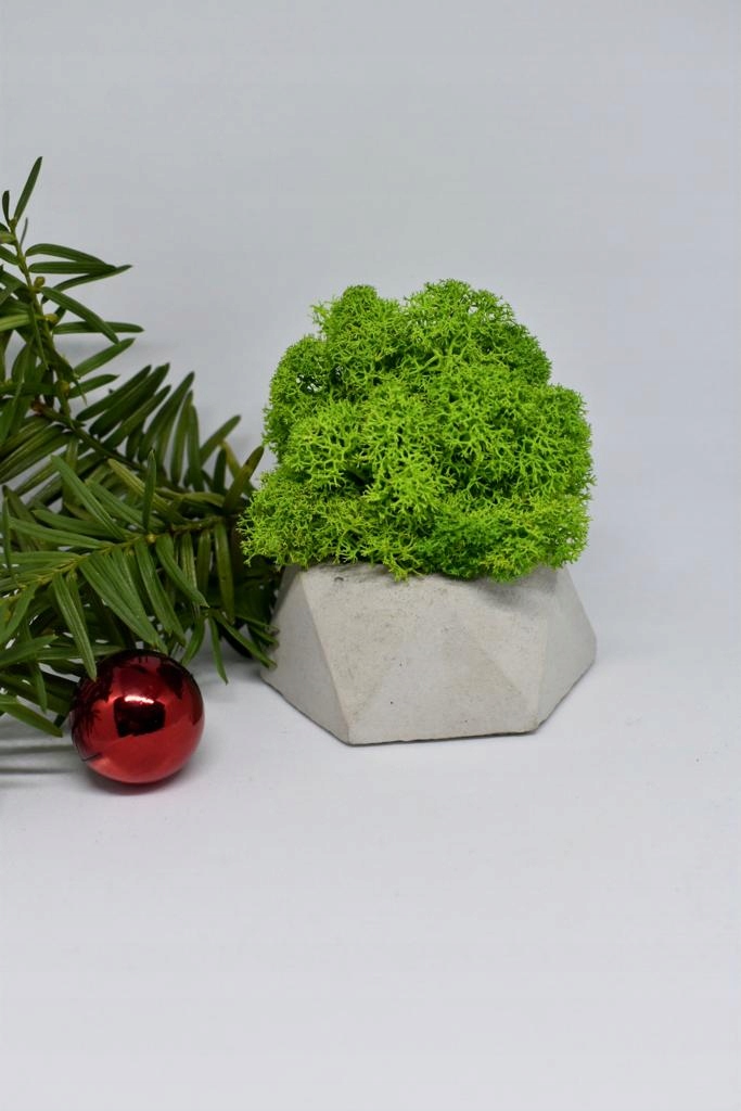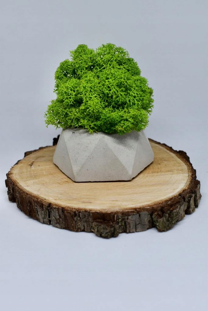 Размеры (размеры 7см x 7 см х 5см из размеров горшка без мха около 5-6 см мох) из зеленого цвета самого высокого качества, чтобы выбрать: Spring Green (один цвет) , толстый и естественно пропитанный финский оленело. Горшок, сделанный вручную из архитектурного бетона.