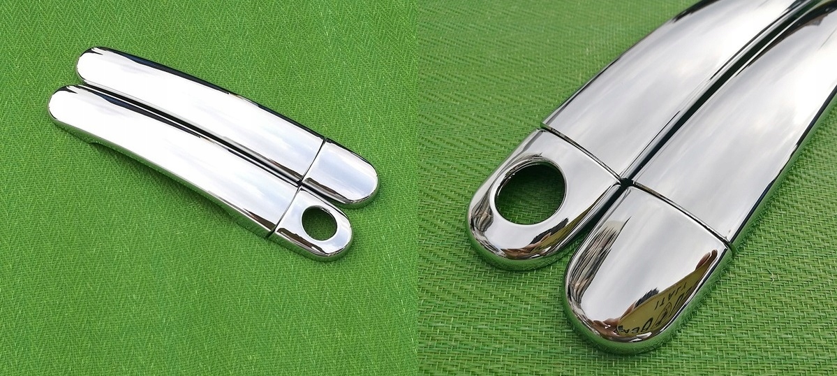 Красивый комплект из четырех хромированных накладок на ручки дверей для передних дверей ПАССАЖИРСКОЙ и ВОДИТЕЛЬСКОЙ дверей.